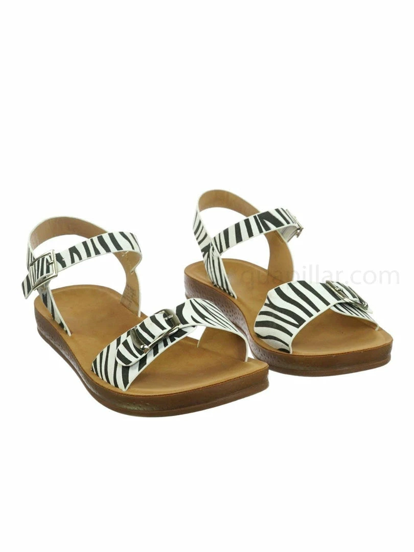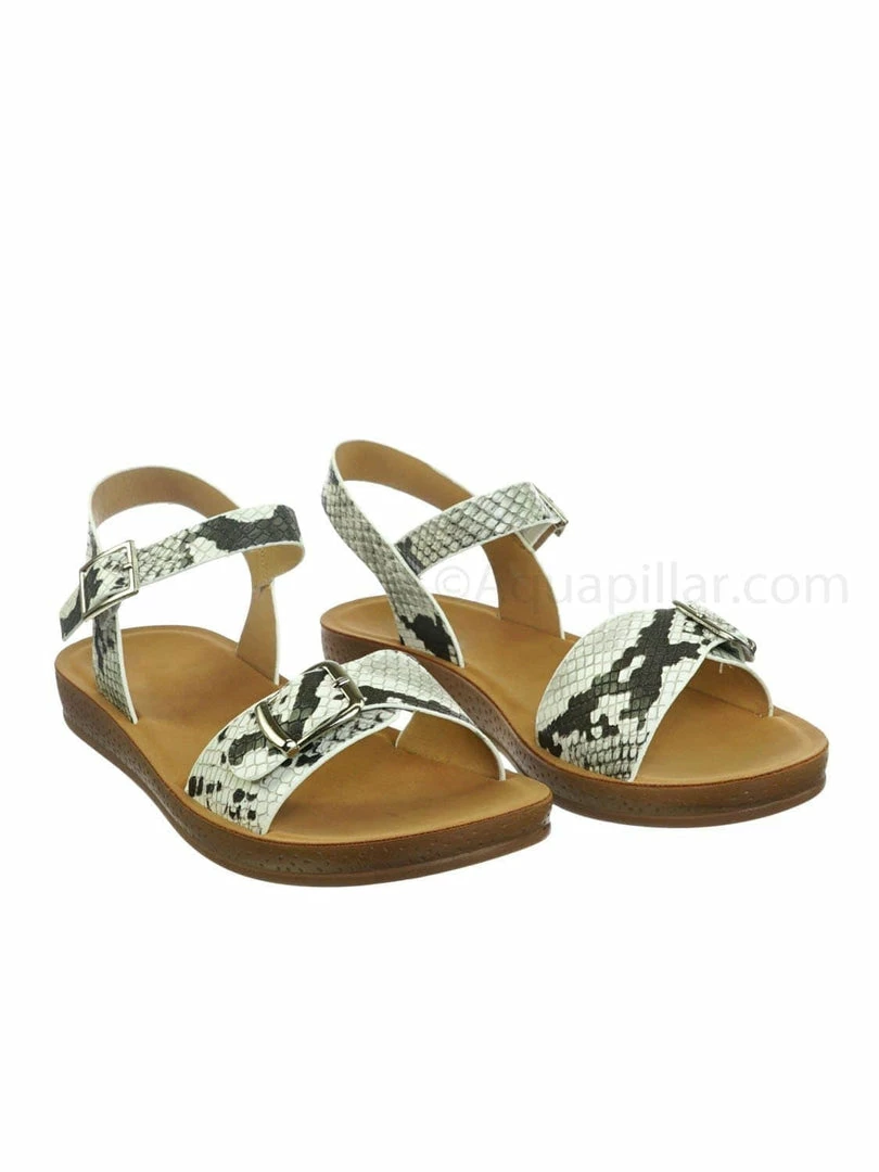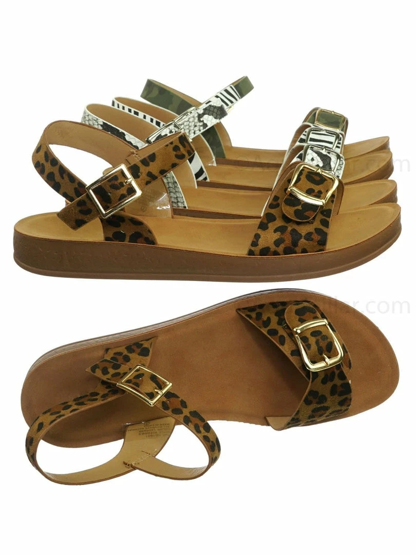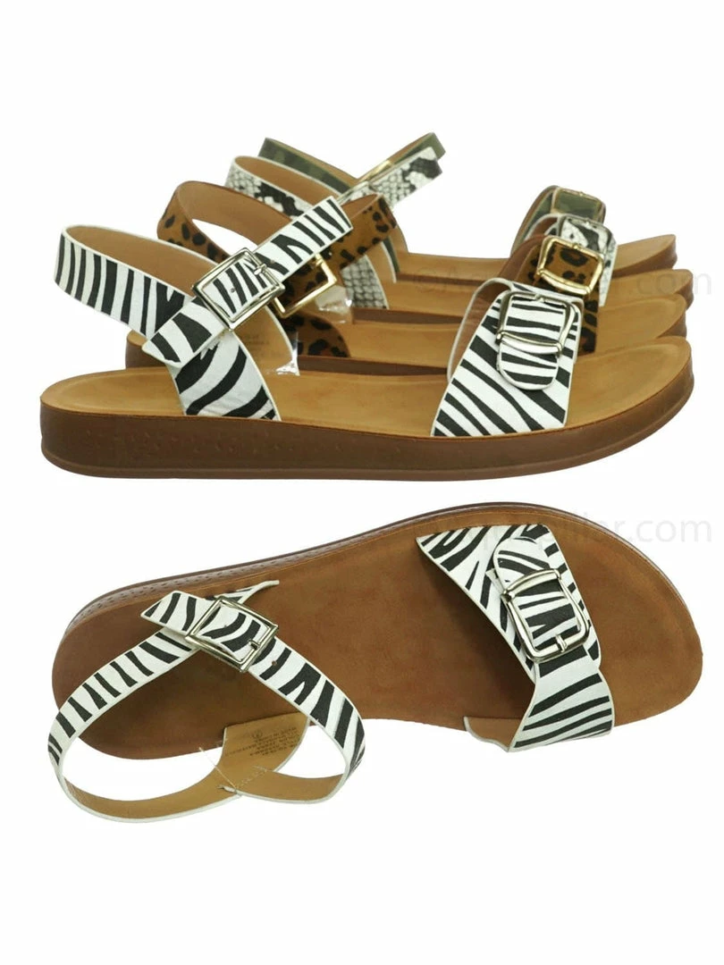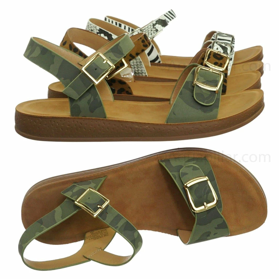Product Detail : Get comfy with these rubber Flatform sandal featuring a thick padded outsole, decorative buckled foot strap and adjustable ankle straps.