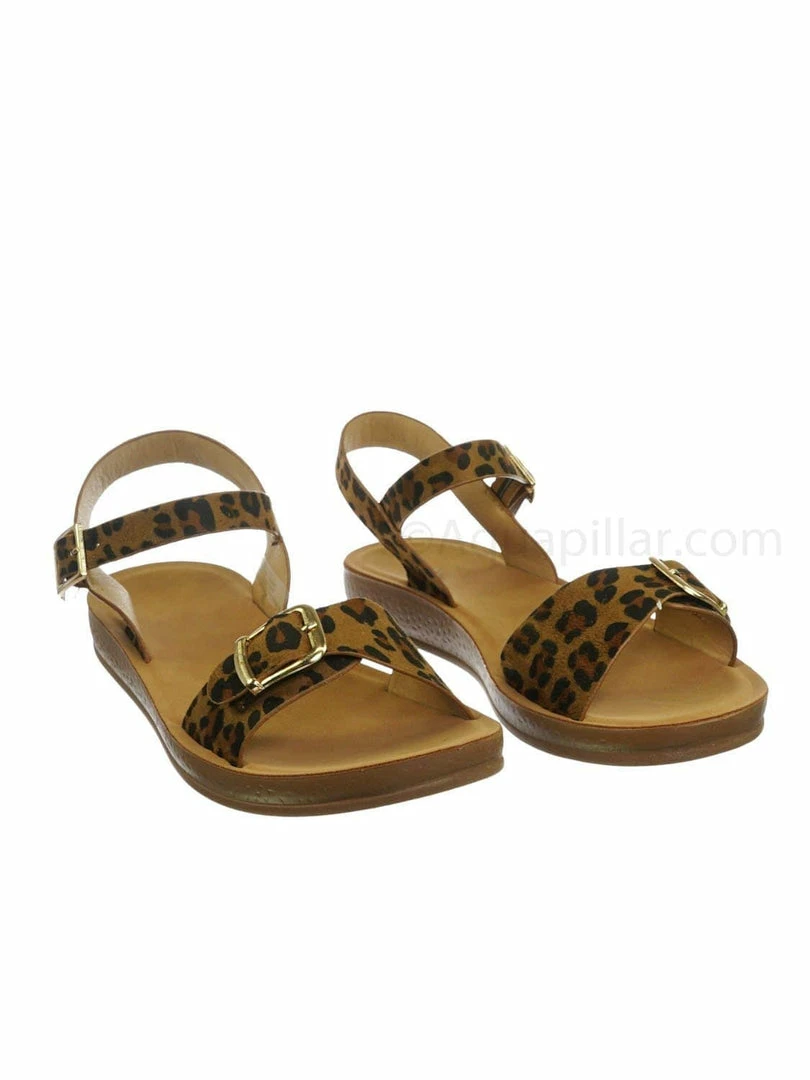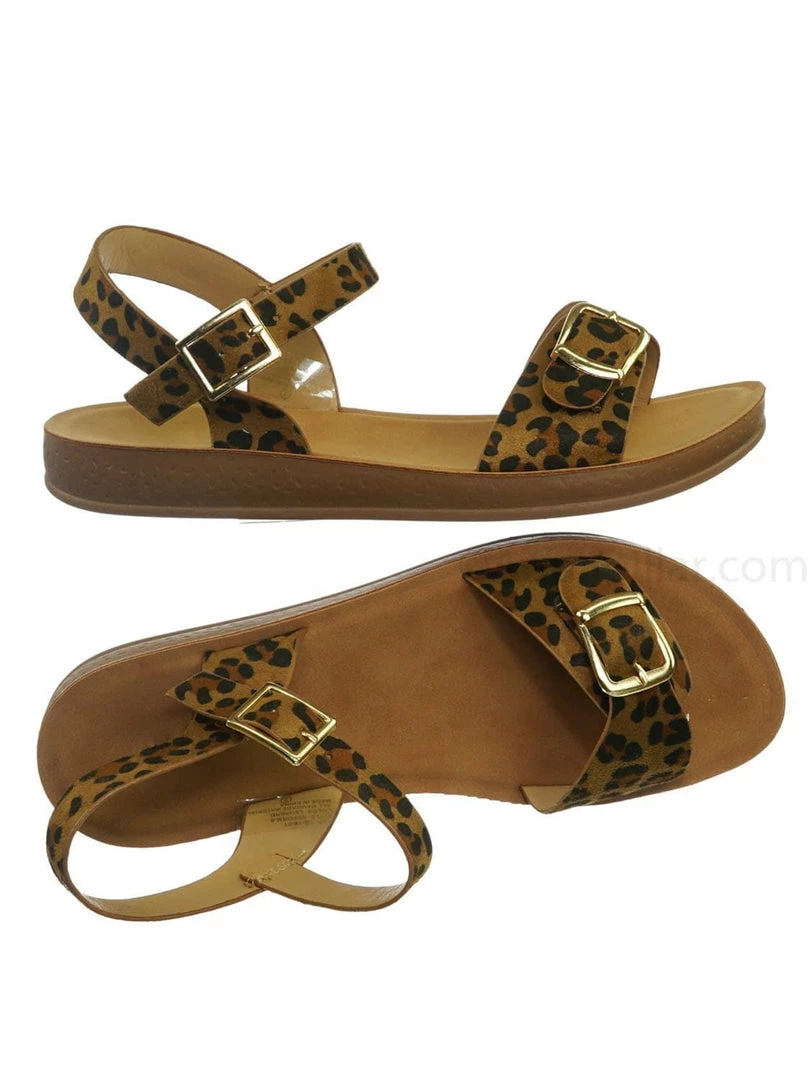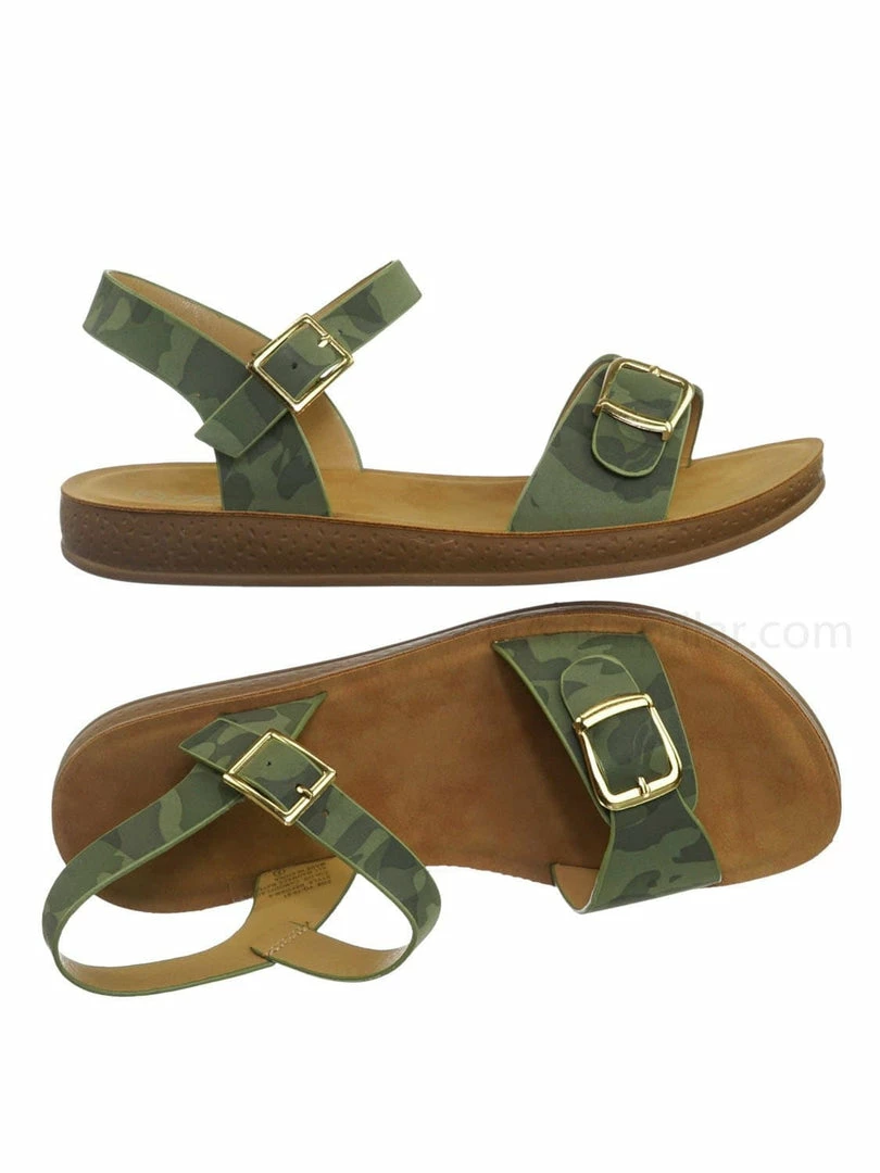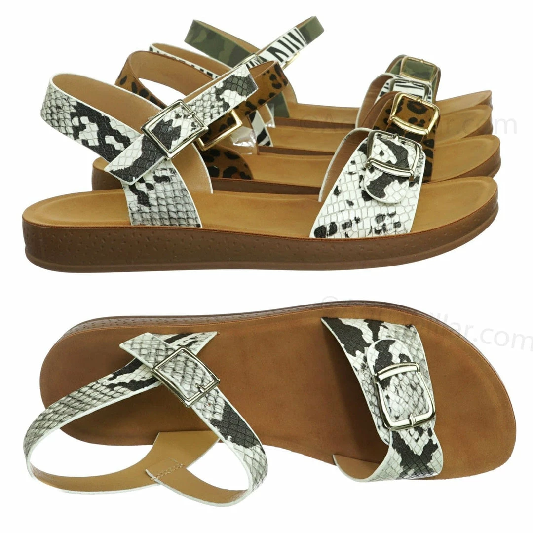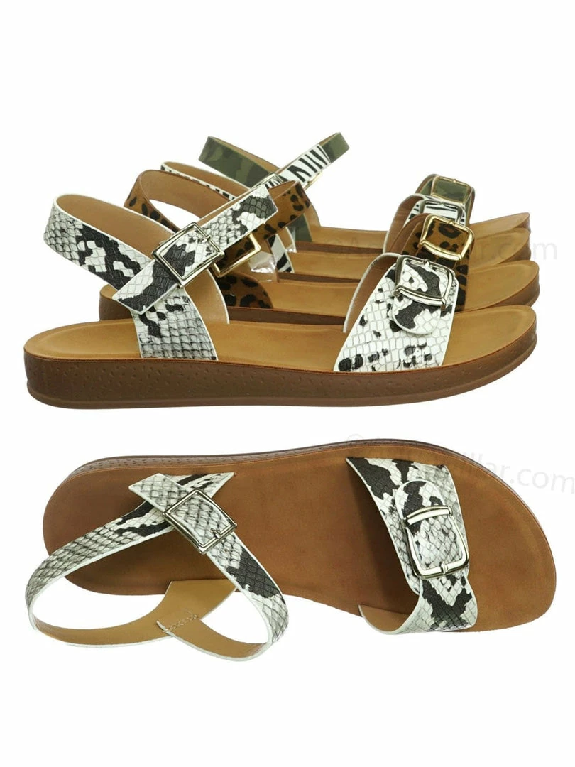 Product Detail : Get comfy with these rubber Flatform sandal featuring a thick padded outsole, decorative buckled foot strap and adjustable ankle straps.