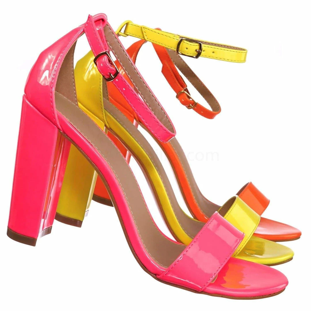 Glaze Lily1 60s Retro Neon Block Heel Sandal – Women’s Open Toe Evening Dance Shoes New