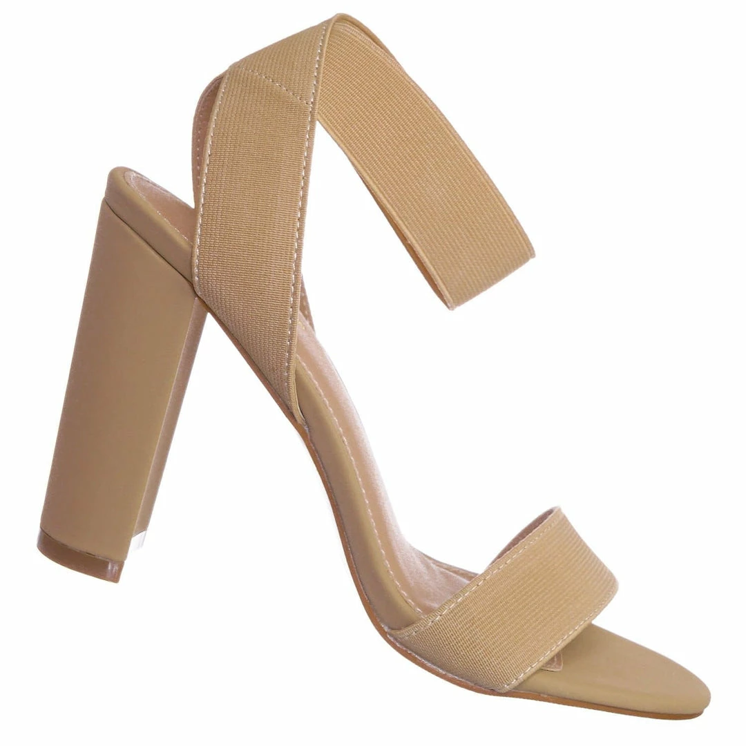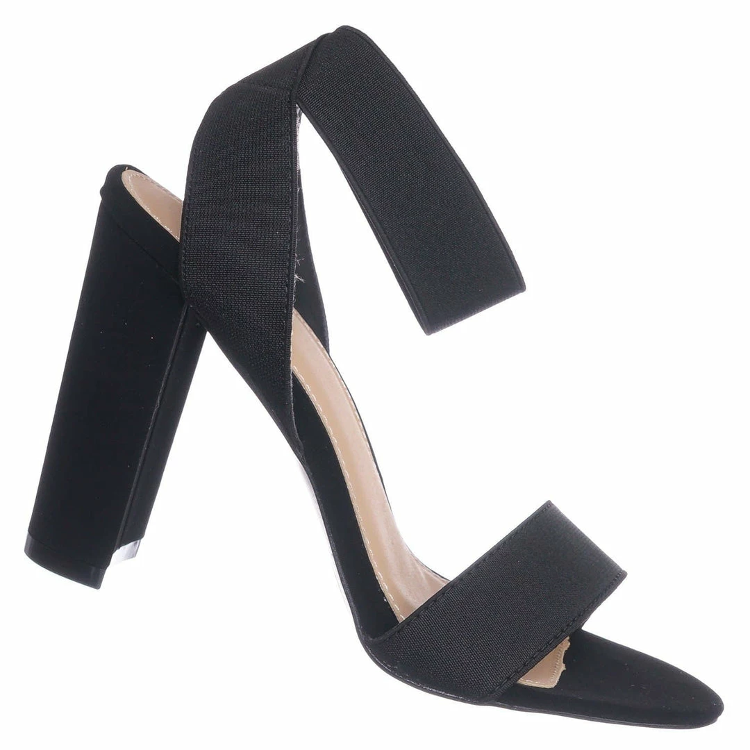 Glaze Lily34 Elastic Chunky Block High Heel Sandal – Women Open Toe Dress Shoe