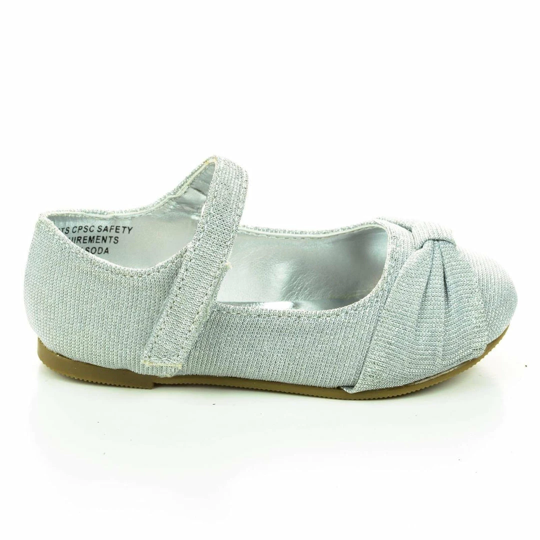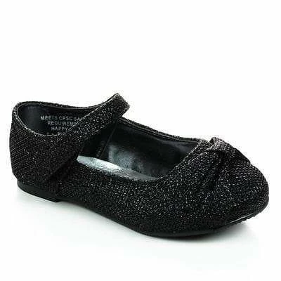 Infant Toddler Baby Girl’s Mary-Jane Round Toe Flats w Glitter. Available in Black, Silver, Pink etc. All man made materials. By Happy Soda Shoes.