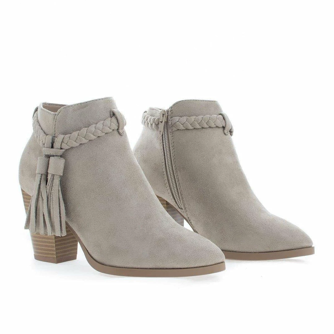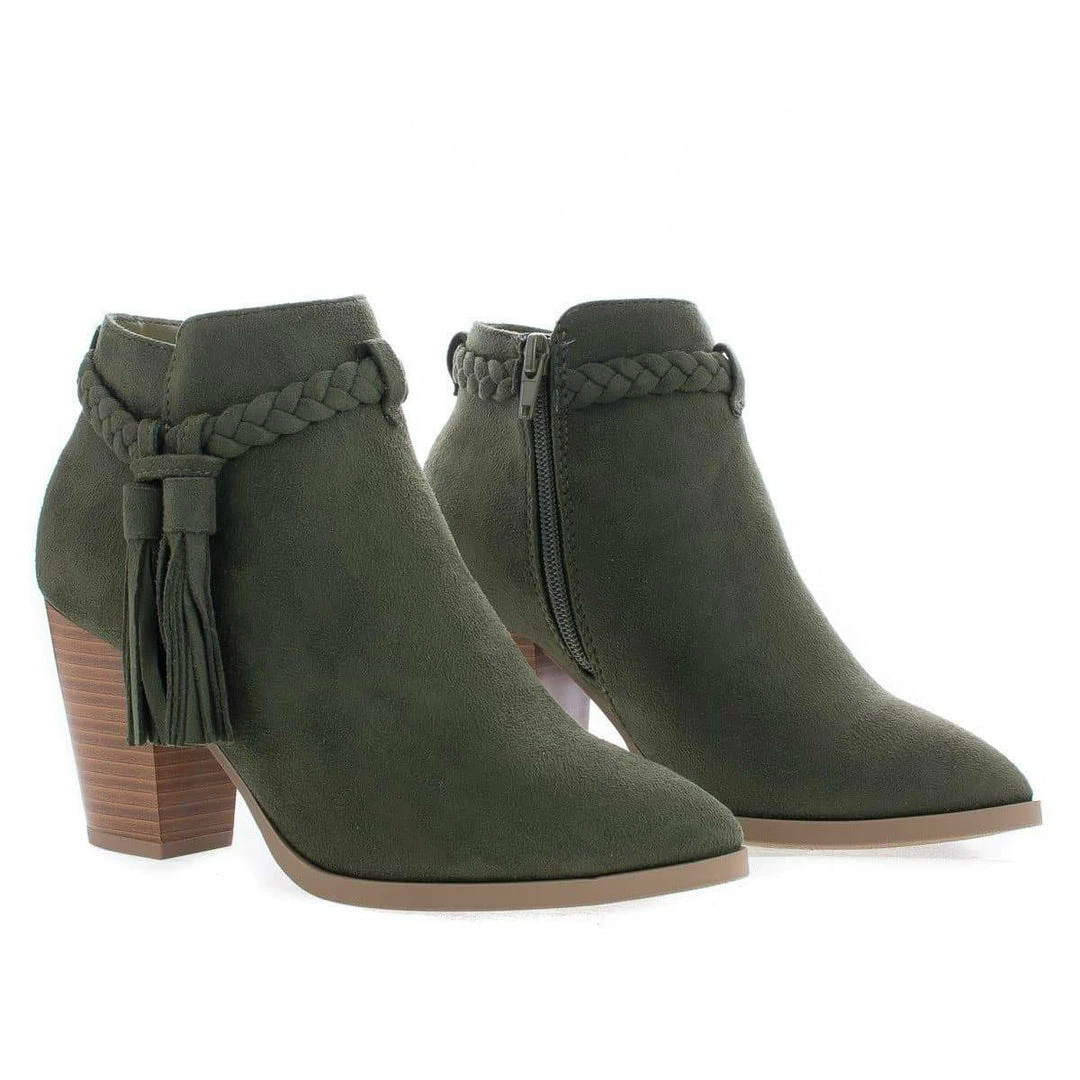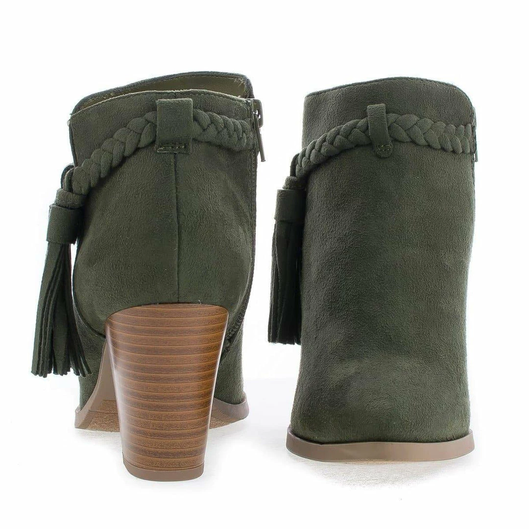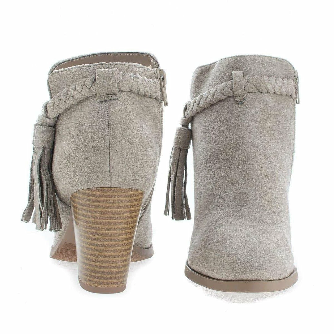 Issey By Delicious, Western Tassel Stacked High Heel Ankle Boots