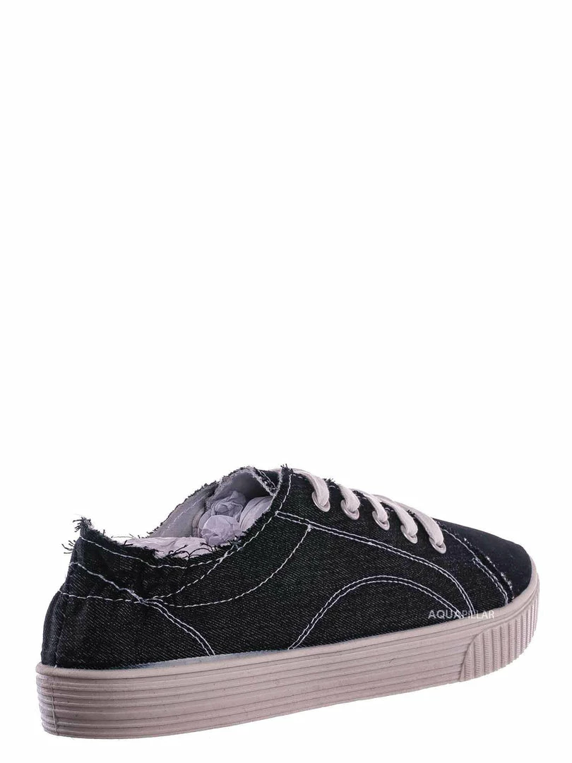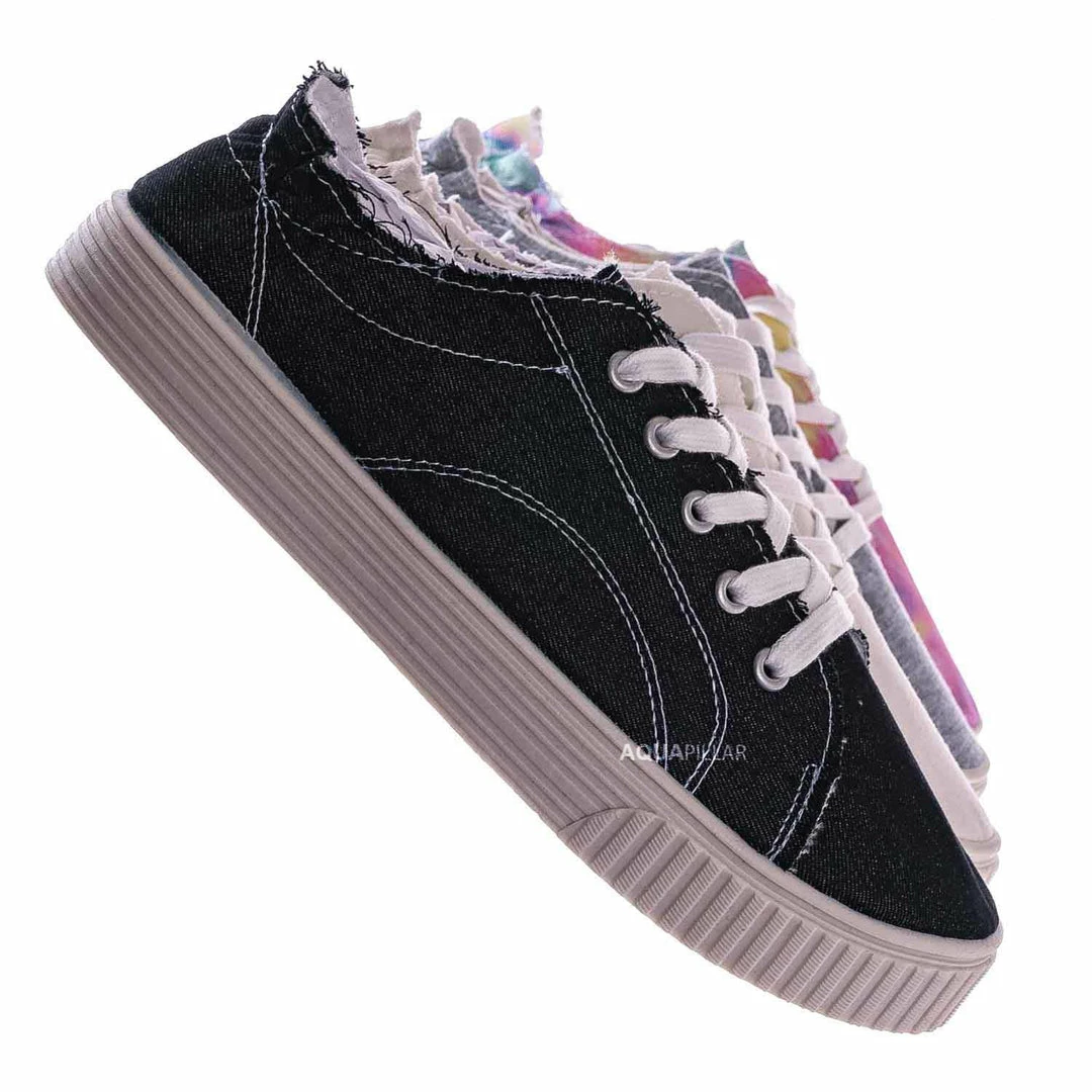 Product Detail : These sneaker features a comfy thick rubber outsole to minimize impact with the floor with contrasting stitch detail on canvas upper, raw no-trim edges, full lace up closure and padded insole. Heel counter is made a elastic to better hug onto your feet. Choose from solid color and tie dye, the tie dye is completely random, no two are alike