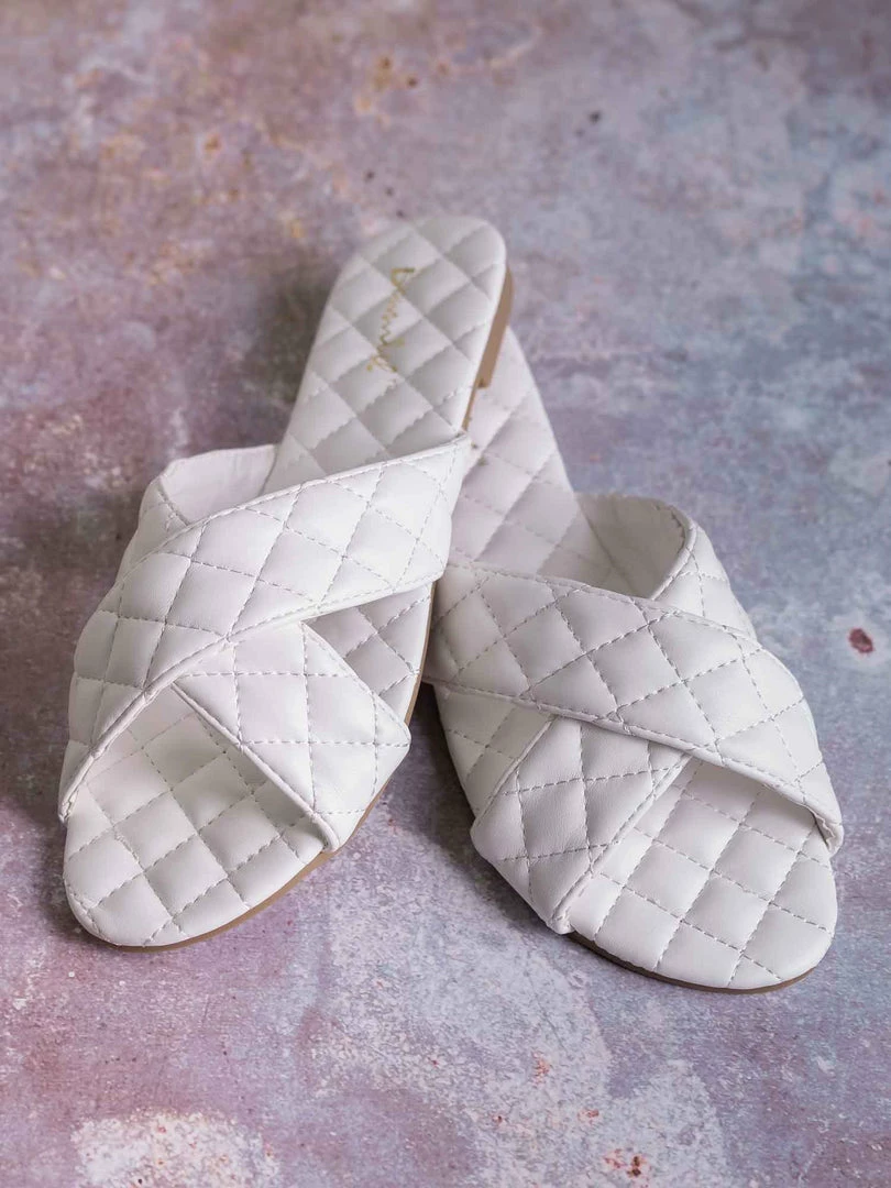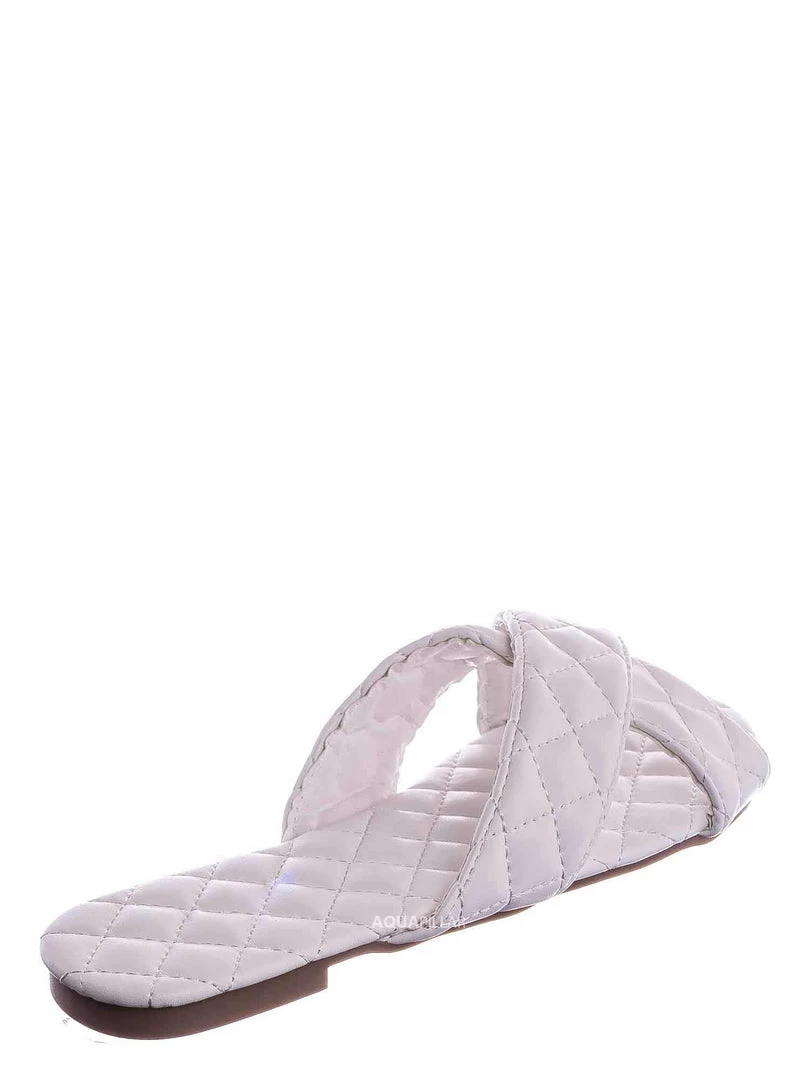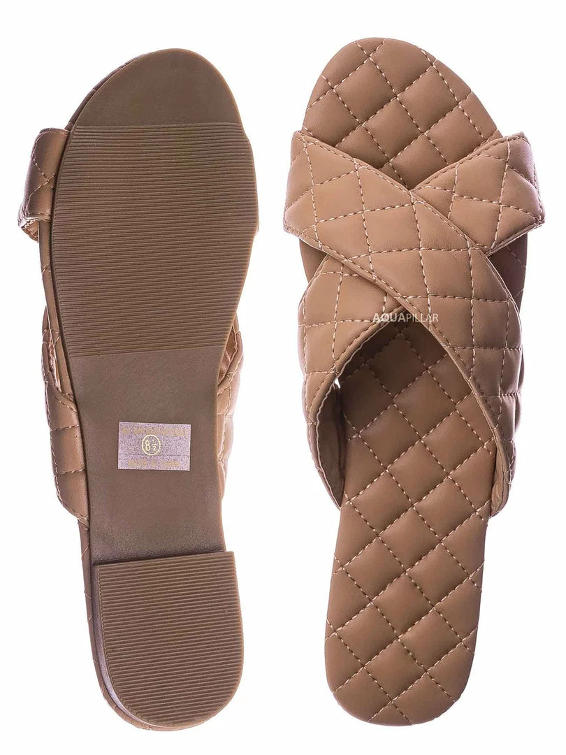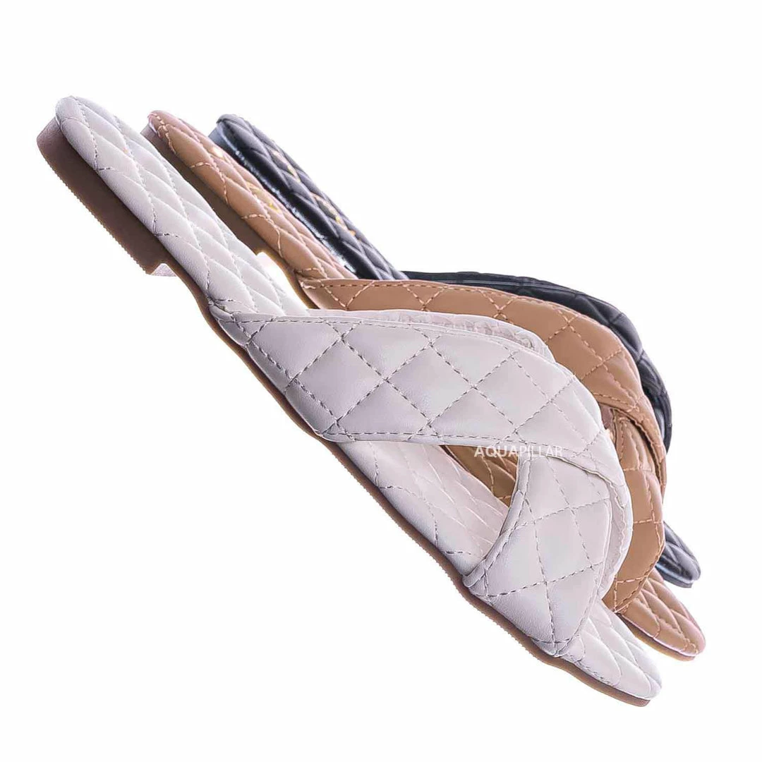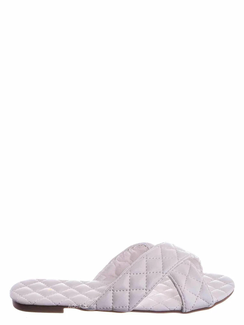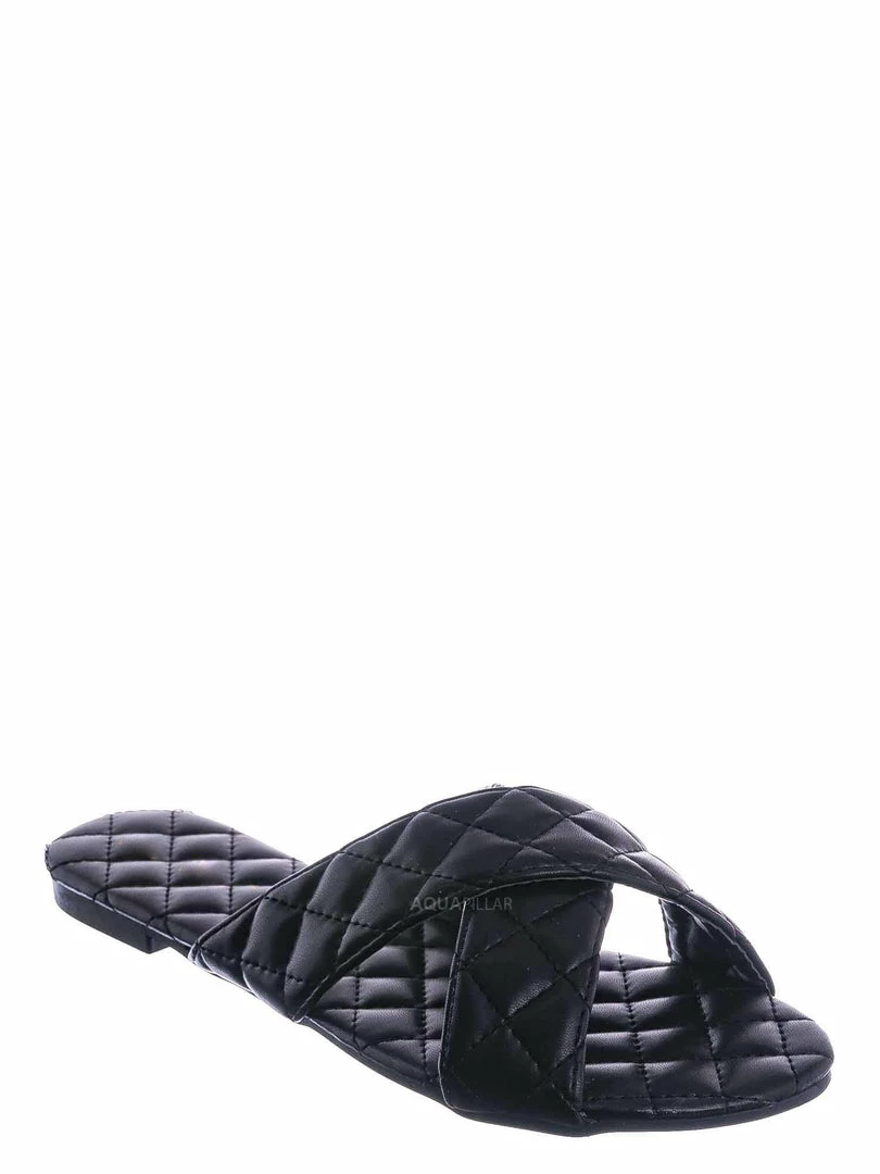 Product Detail : These slides features a puffy quilted strap and insole with double cross strap, easy to slide in construction and opened round toe.