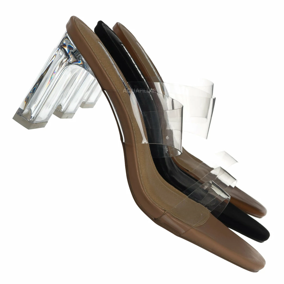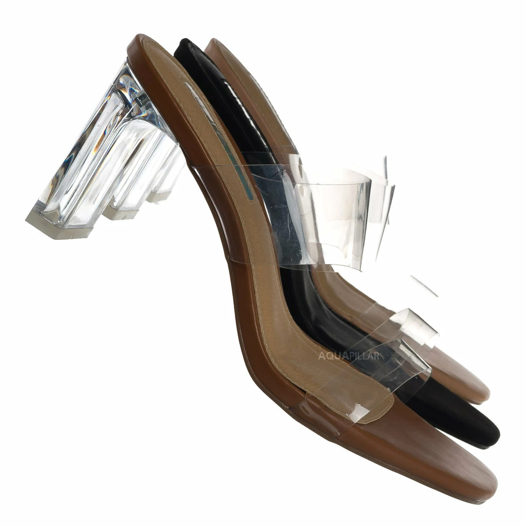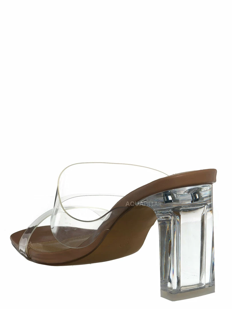 AcrÃlico, transparente con tacón alto de bloque grueso.