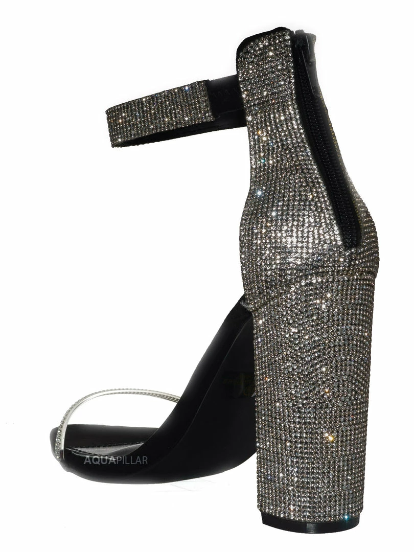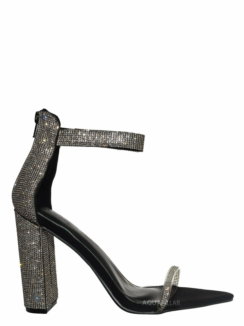 Evening cocktail sandal silhouette with rhinestone embellished upper.