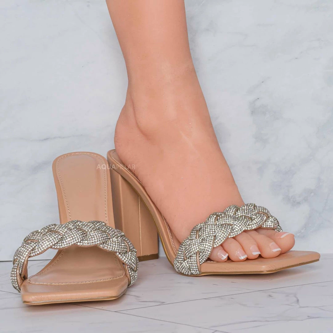Correa trenzada adornada con cristales de diamantes de imitación.