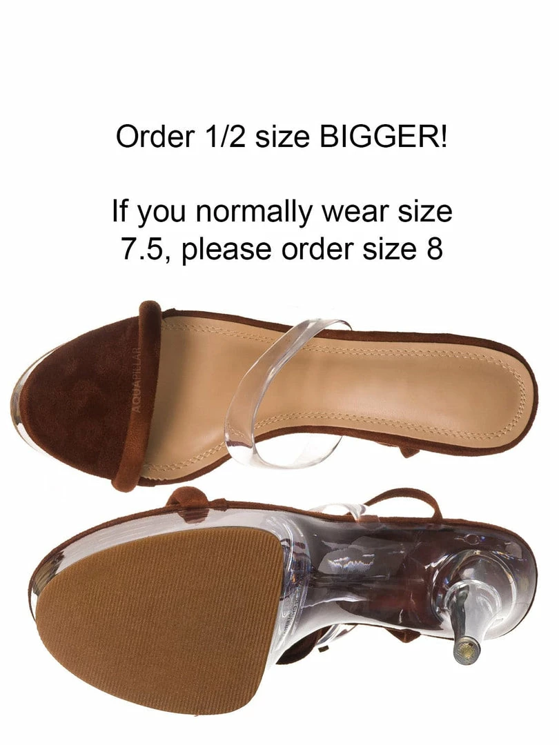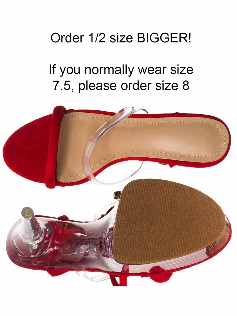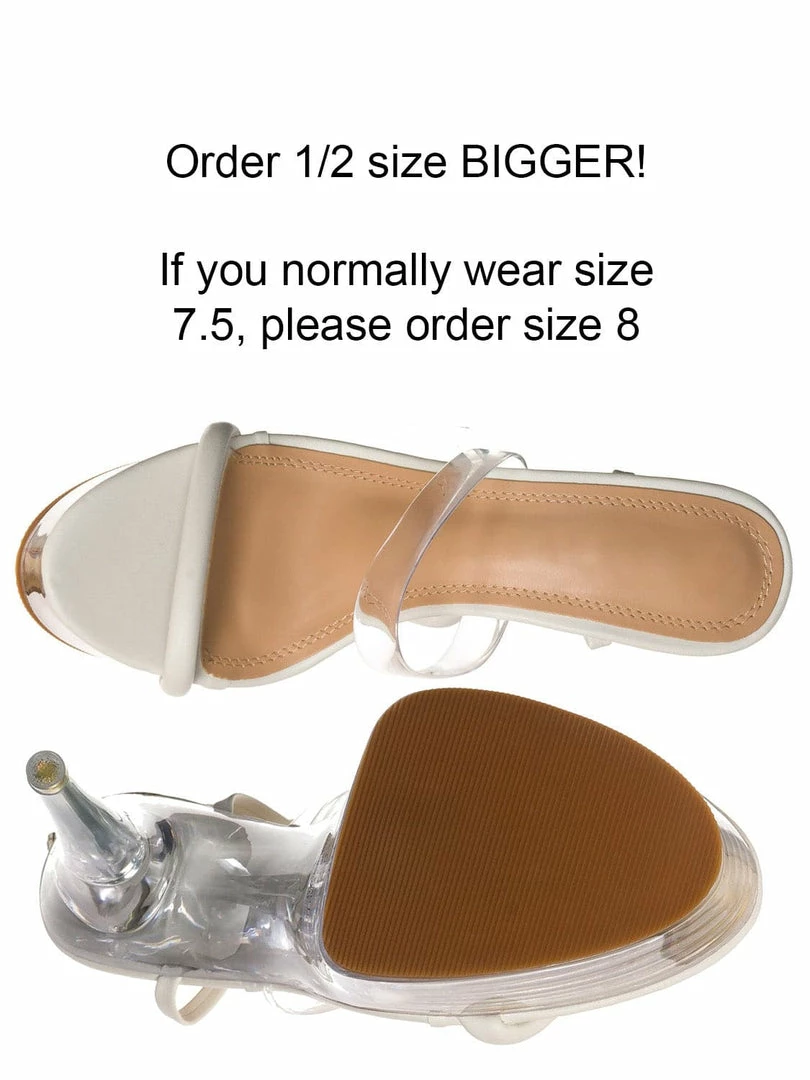 Benefits : Dance the night away in these super tall and sexy clear sandals. These are available in teenage/adult sizes. The size listed is in US Women’s Shoe Size System, please convert this to Men’s or any other systems using the conversion chart.