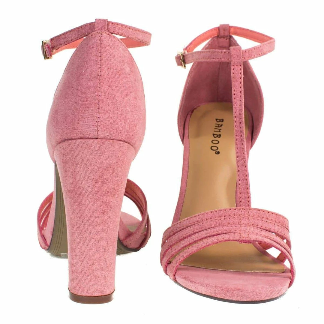 Limelight03M By Bamboo, Open Toe Sandal, T-Strap Ankle Strap, Chunky Block Heel, Women Shoes New