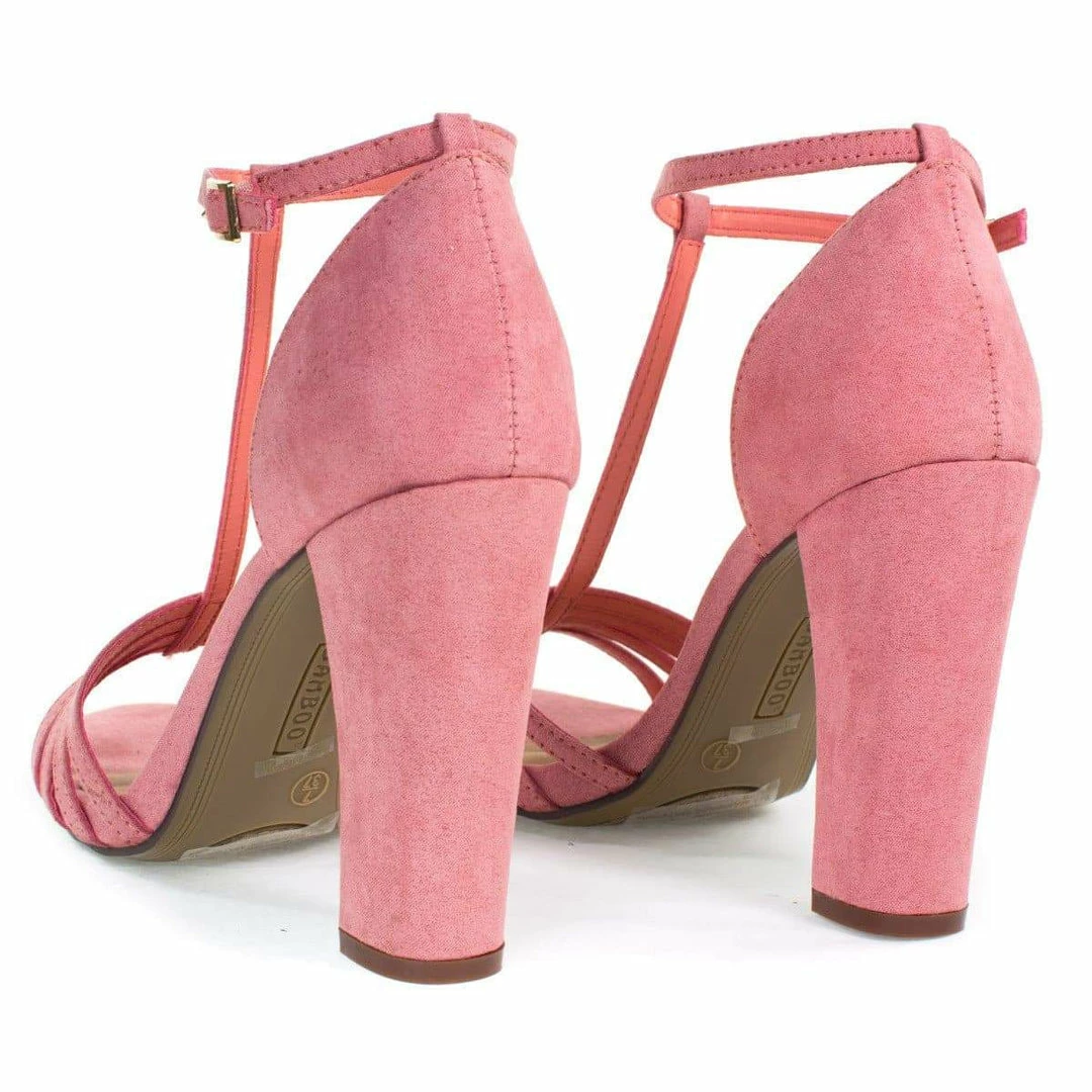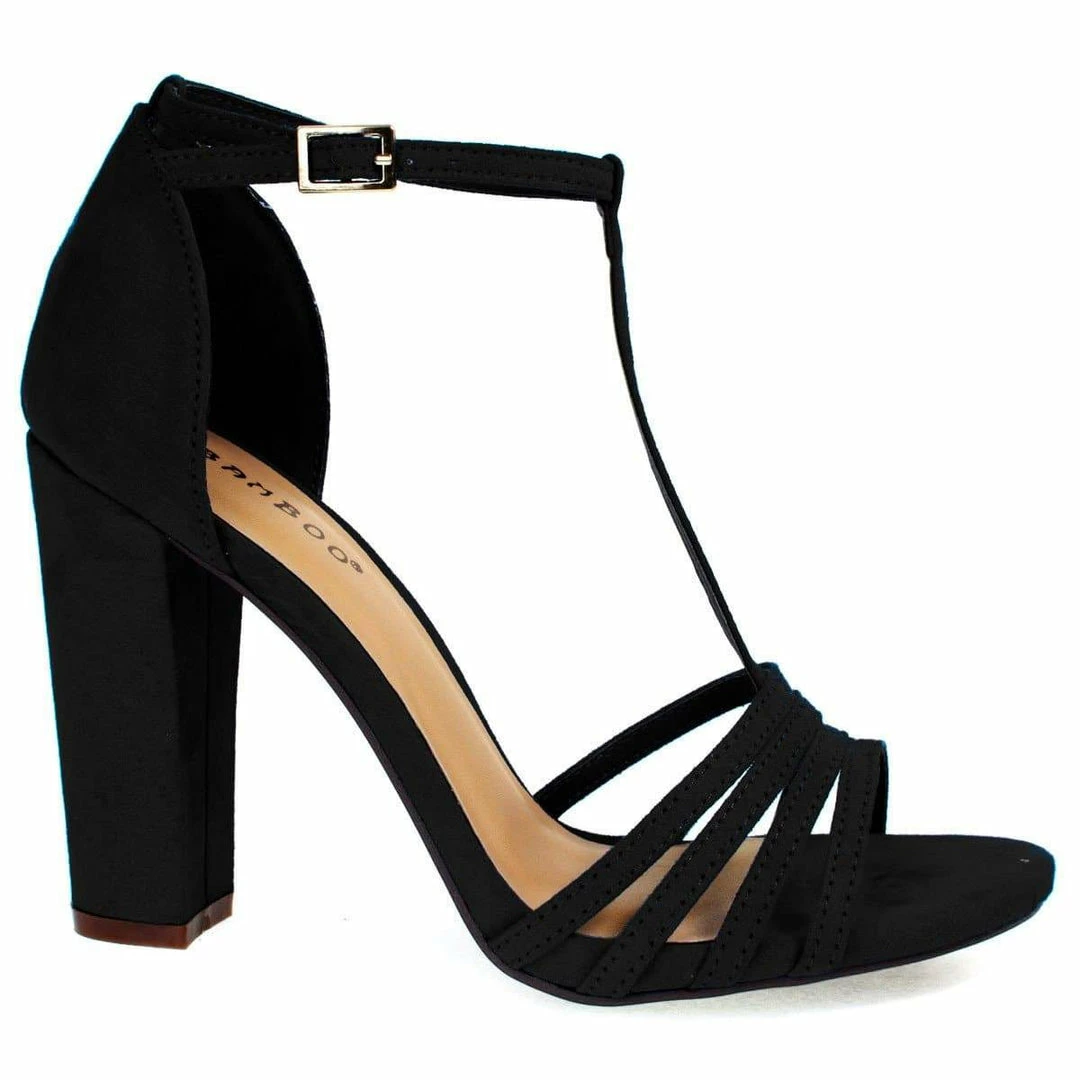 Features: Turn head with these goddess-like dress sandal featuring a simple evening sandal silhouette, t-strap, adjustable ankle strap, caged strap design, chunky high block heel and slight padded sole.