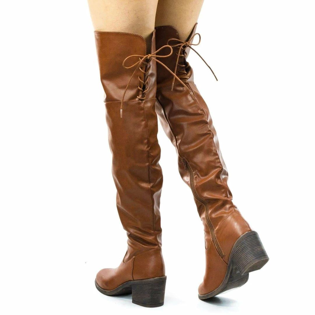 Be the first to review “Louie05 By Bamboo, Faux Fur Inner Lining W Corset Lace Up Over Knee Thigh High Block Heel” Cancel reply