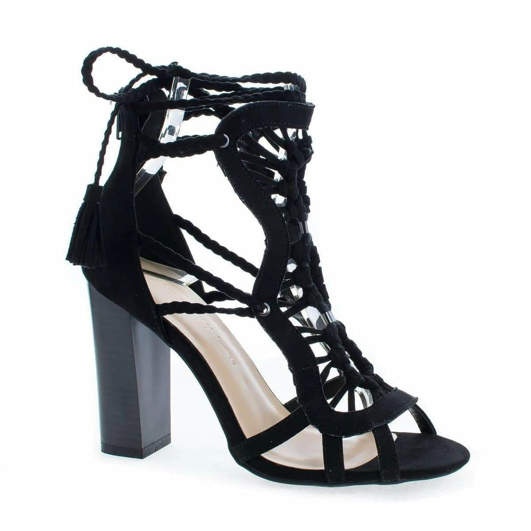 Luciana86 By Wild Diva, Braided Macram?? Leg Wrap Stacked High Heel Sandals