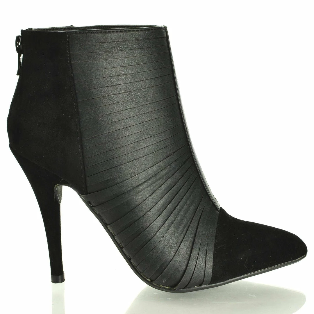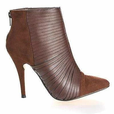 Fashion meets comfort in these cut out ankle booties, featuring a pointy toe, a splicing cut out detail, a back center zipper for easy wear and closure, a cushioned insole, and an approximate 4 inch high stiletto heel. Style fits true to size without socks, if socks wish to be worn it is suggested to purchase a half size bigger. Available in Black, Brown, etc. All man made materials. By Anne Michelle.