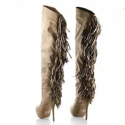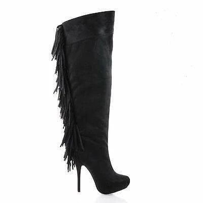 New Sonny214 By Wild Diva, Over Knee Fringe Platform Stiletto Boots