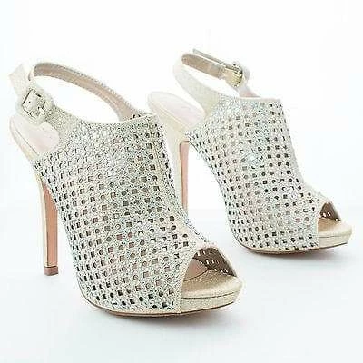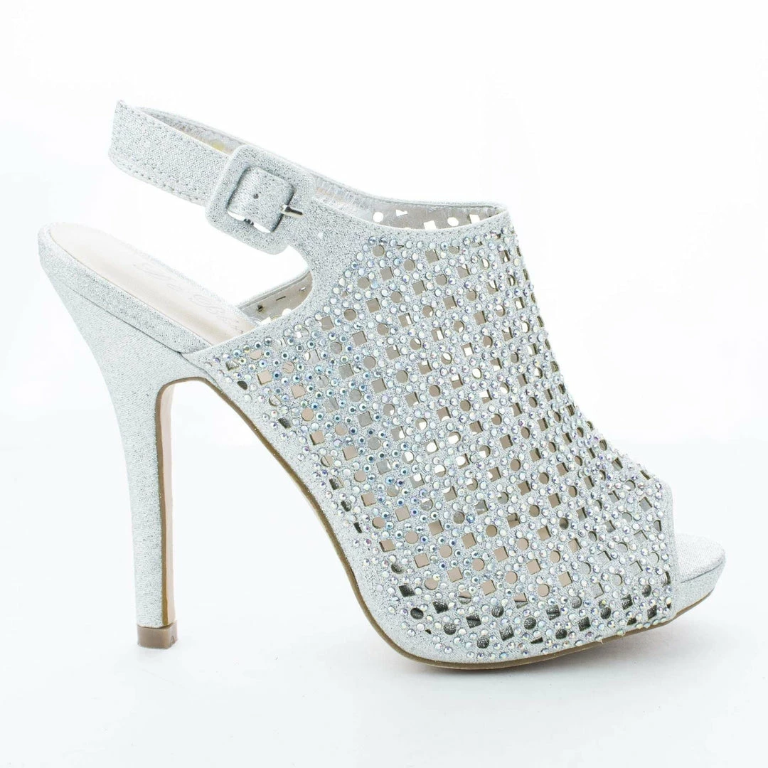 New Yael77 By Blossom, Peep Toe Laser Cut Out Rhinestone Studded Stiletto Pumps