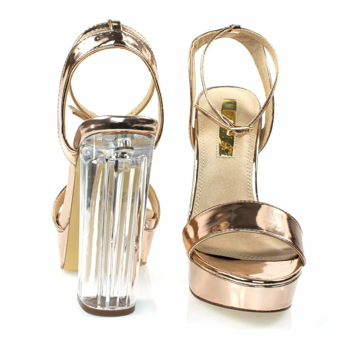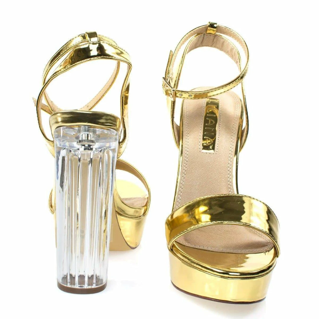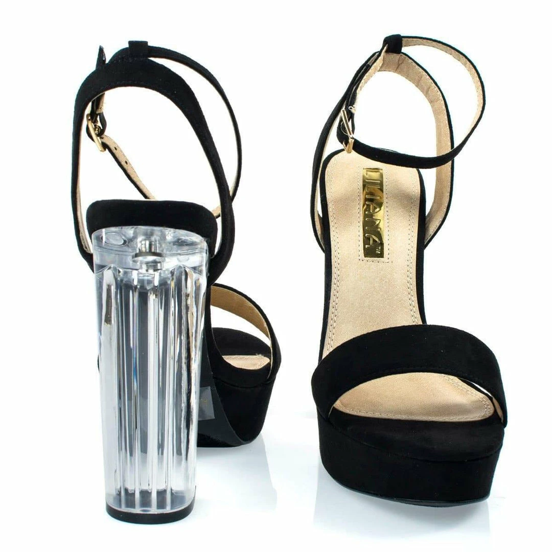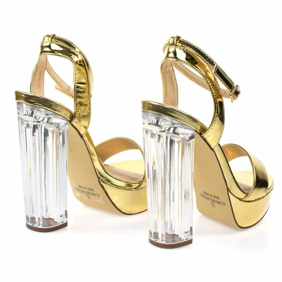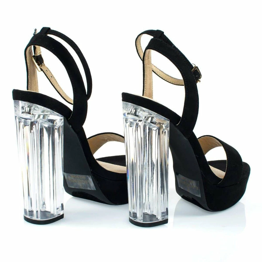 About This Shoes :Grace the dance floor with these alluring transparant perspex sandal featurning see through acrylic block heel, platform, feet strap, adjustable ankle strap. Brand – Liliana