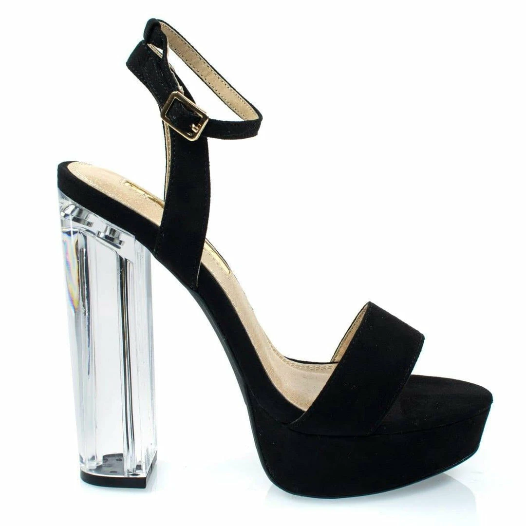 Snyder1 By Liliana, Perspex Block High Heel Platform Sandal W Adjustable Ankle Strap New