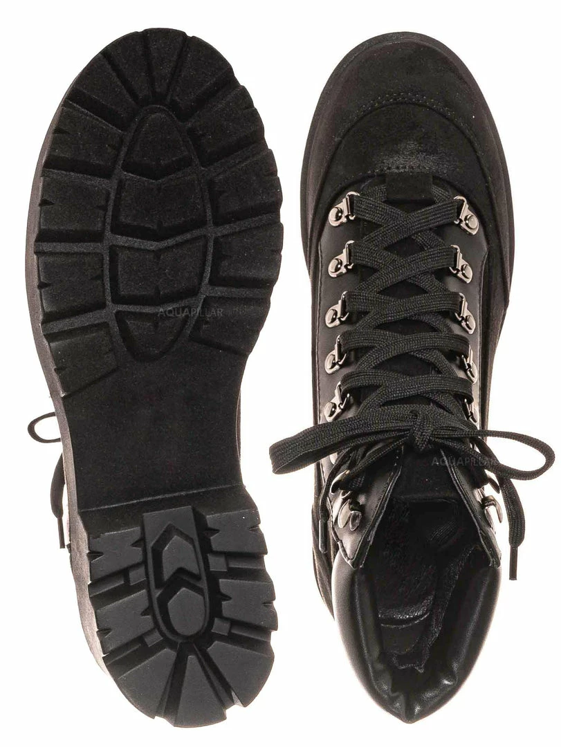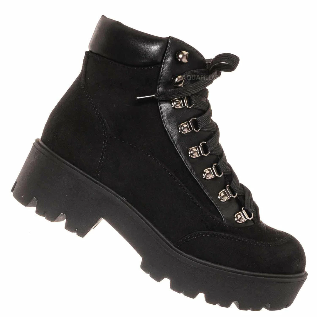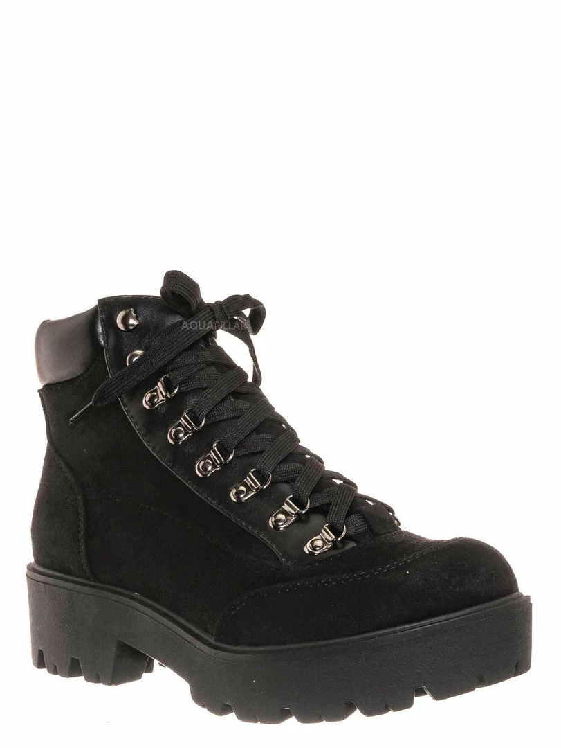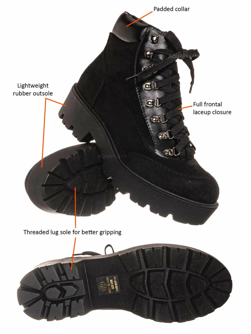 Product Detail : These bootie features a classic military inspired combat boots silhouette on a lightweight platform base. The lightweight rubber is grooved to help grip the ground surface you walk on. The bubble padded collar on the back helps keep your ankle from chafing and the antique eyelet for the lace up closure adds extra interest to the boots.