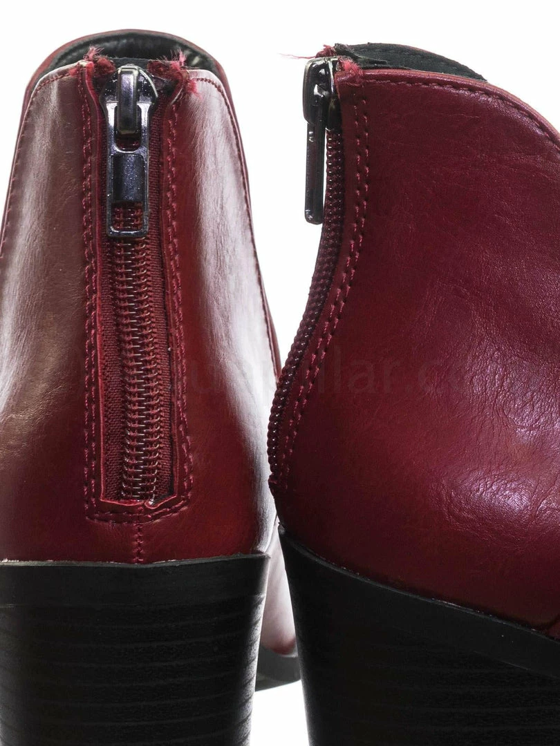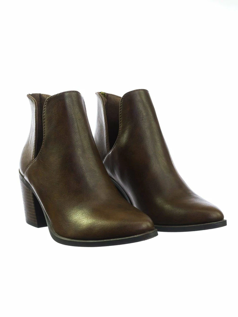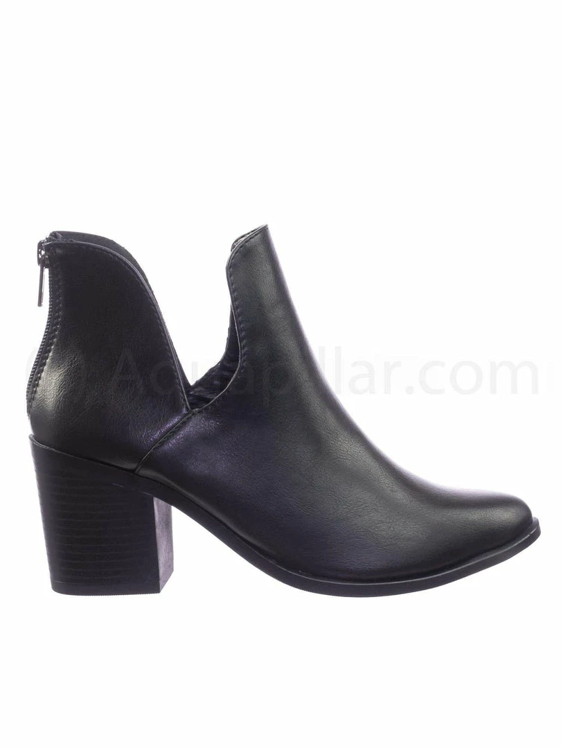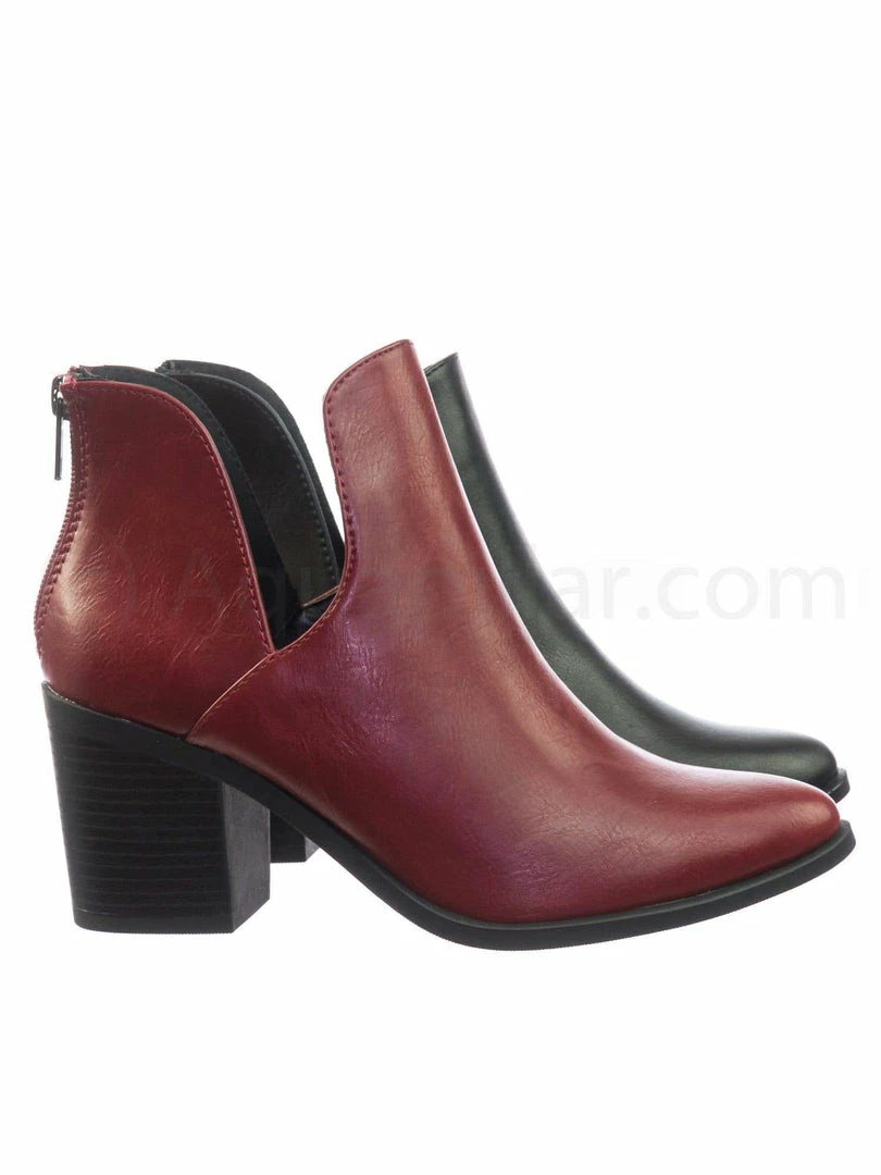 About This Shoes :These boots features a chunky block stack heel with faux woodgrain texture, double side slit opening, ankle height shaft, rear zipper closure and two piece construction.