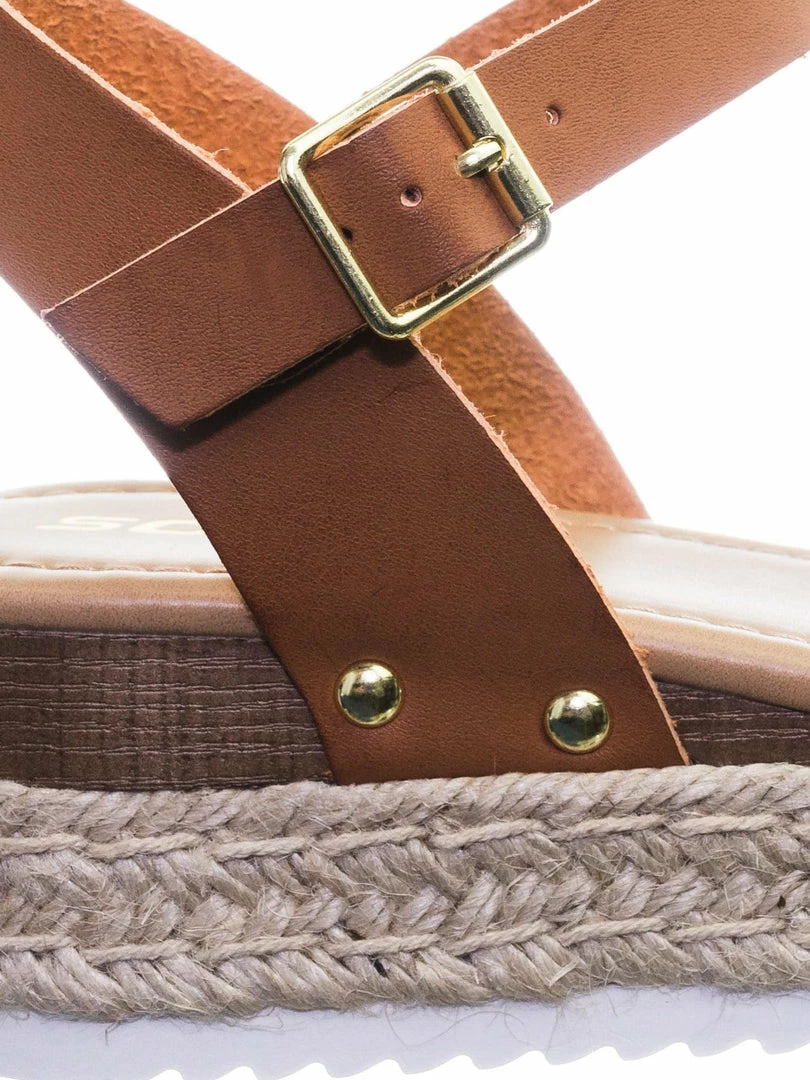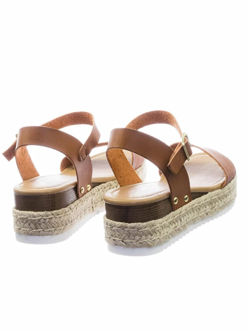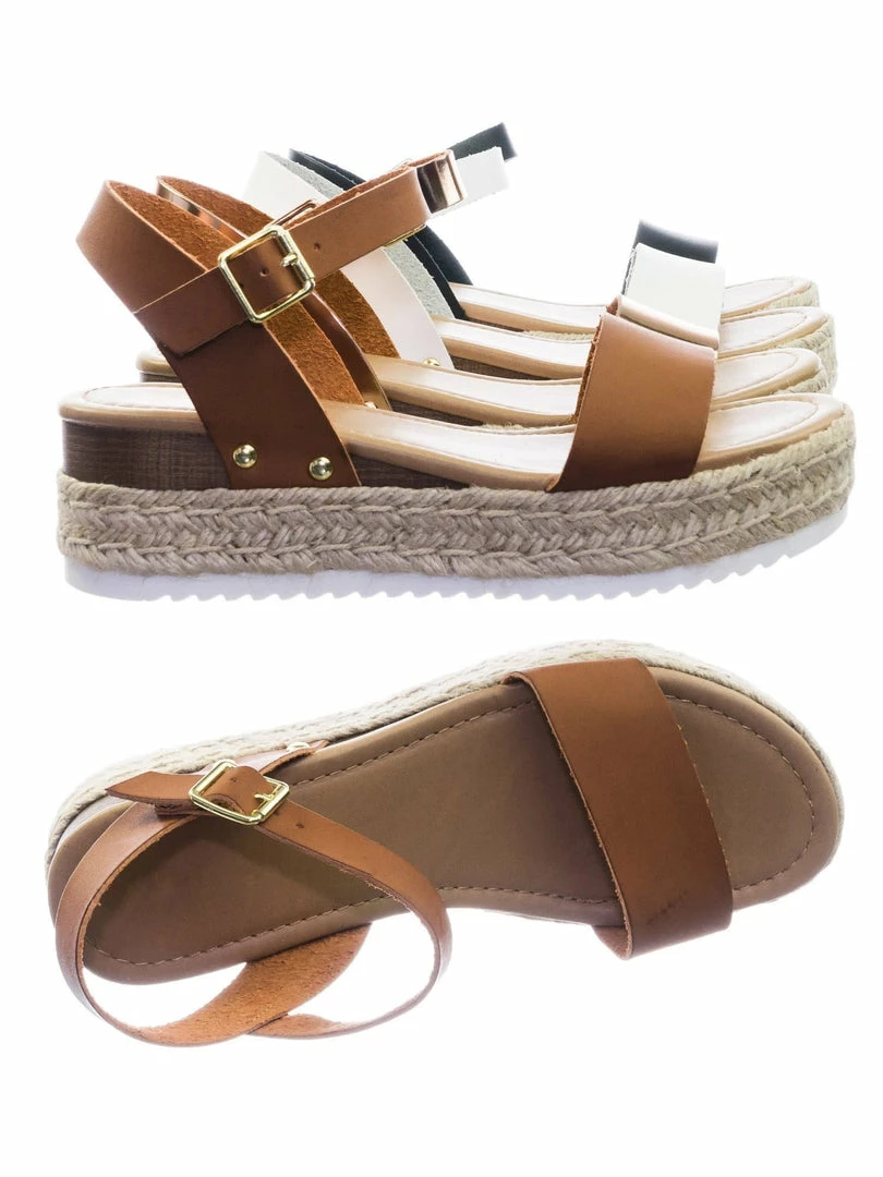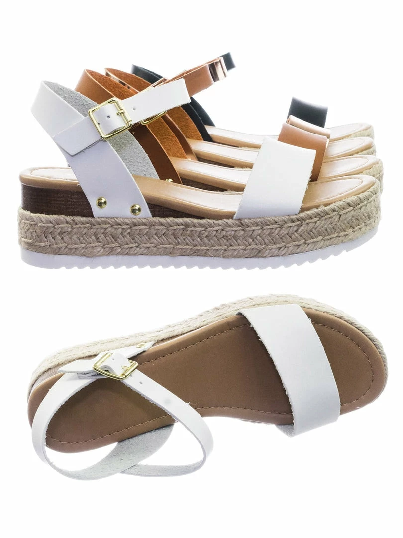 About This Shoes :These sandals features a white EVA shark tooth lug sole with a second layer of platform in jute wrap espadrille, small faux wooden wedge on the back, metal stud detail, open toe construction and raw inner lining. The tan is in a easily scratch and stained material to simulate vintage feel so be aware that your shoes might not look like the photo.