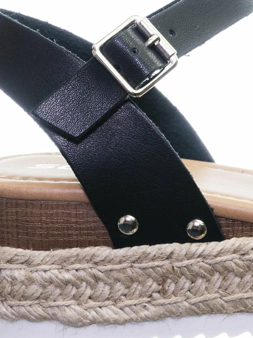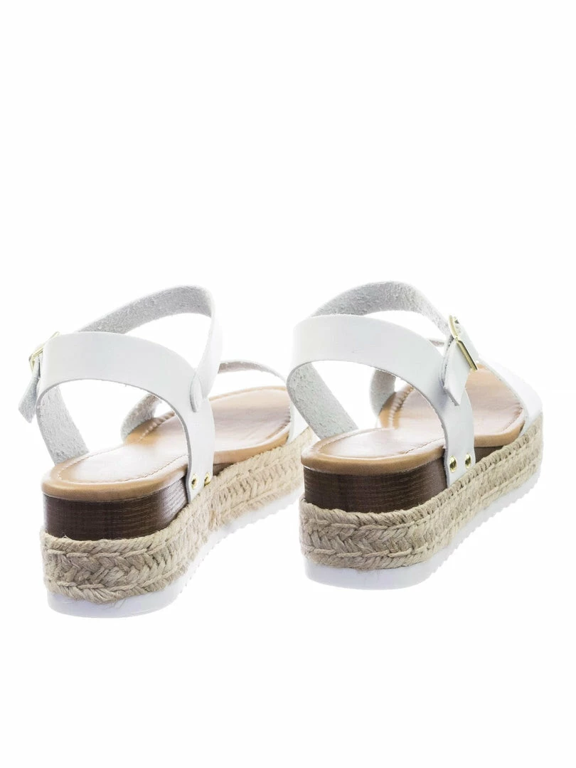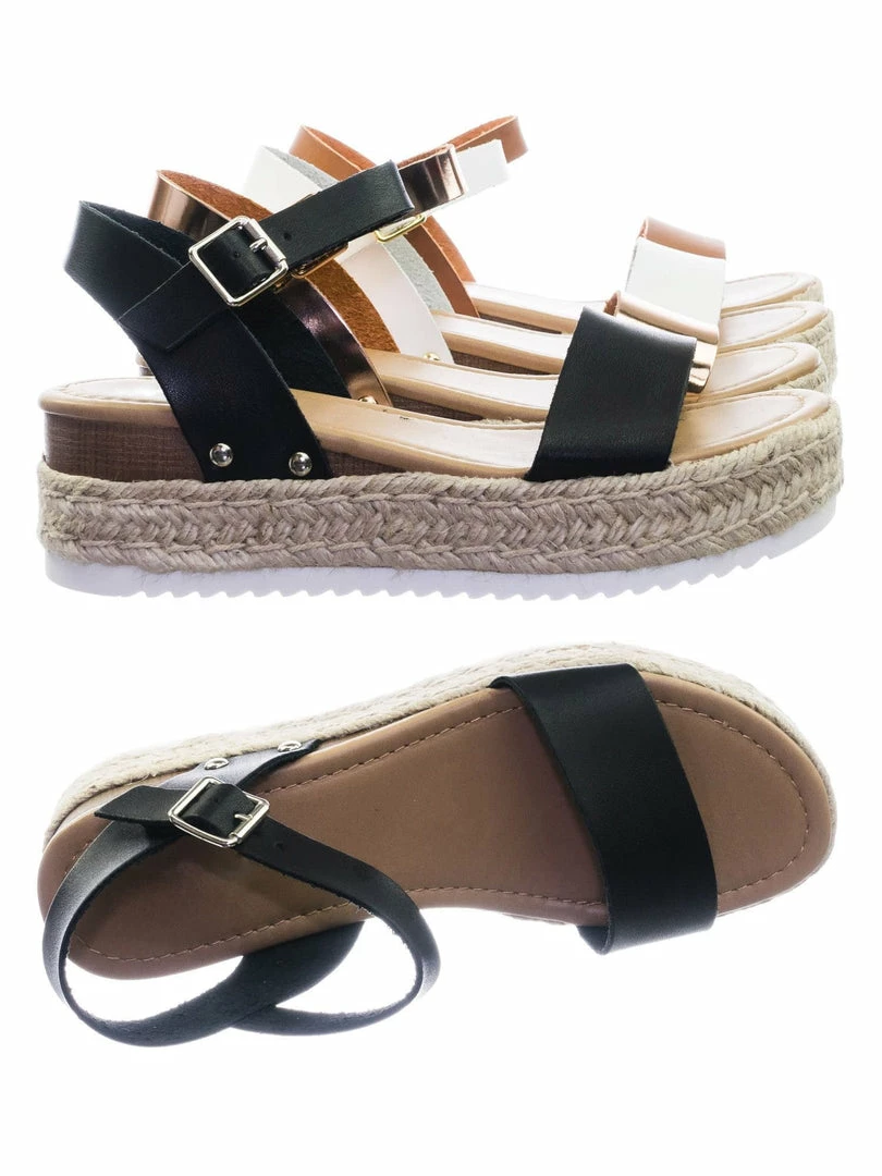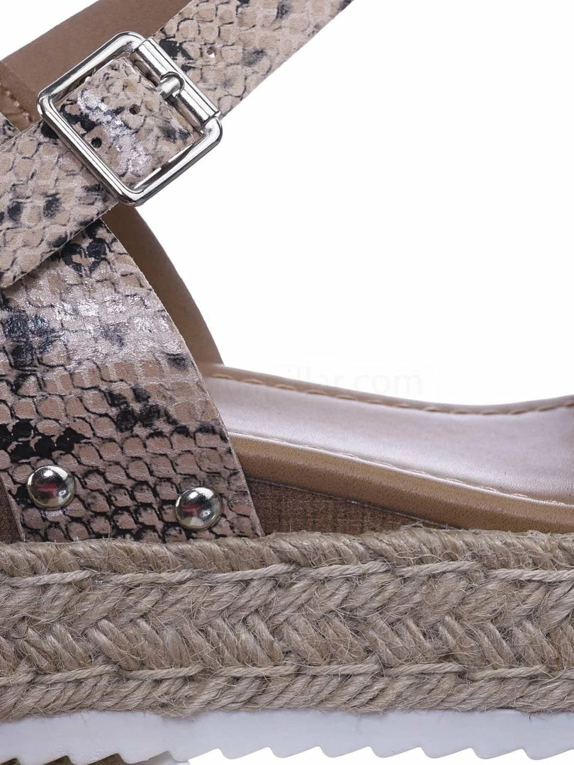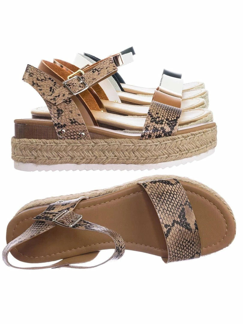 About This Shoes :These sandals features a white EVA shark tooth lug sole with a second layer of platform in jute wrap espadrille, small faux wooden wedge on the back, metal stud detail, open toe construction and raw inner lining. The tan is in a easily scratch and stained material to simulate vintage feel so be aware that your shoes might not look like the photo.