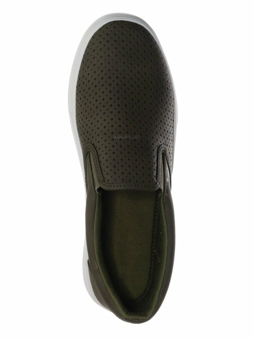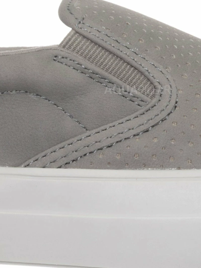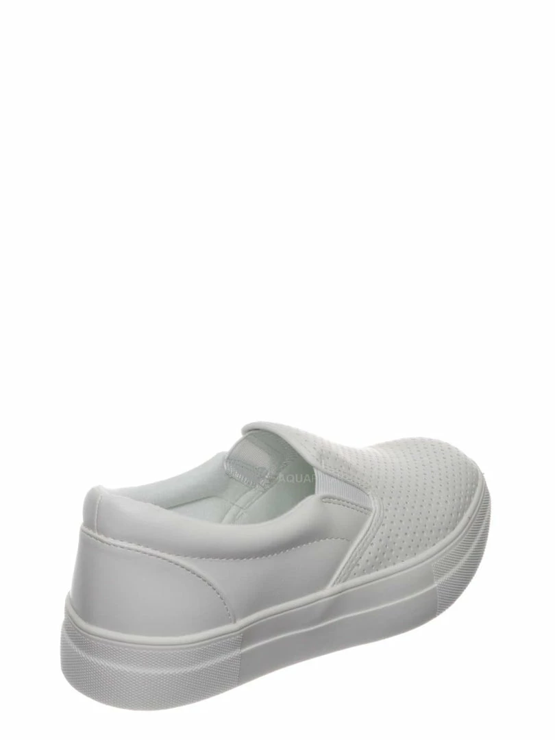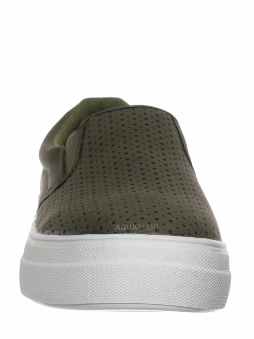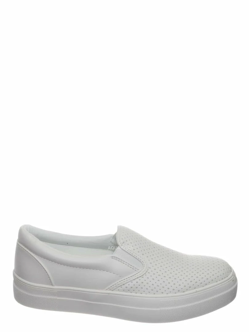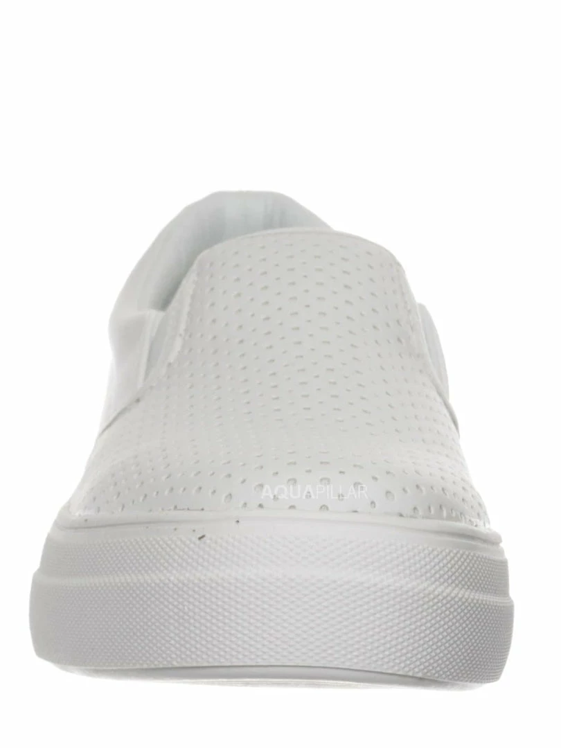 Product Detail : These flatform sneakers features a comfortable thick rubber platform, foam padded insole, perforated dot pattern, rounded closed toe, slip on loafer construction, side elastic for easy closure, padded back collar.