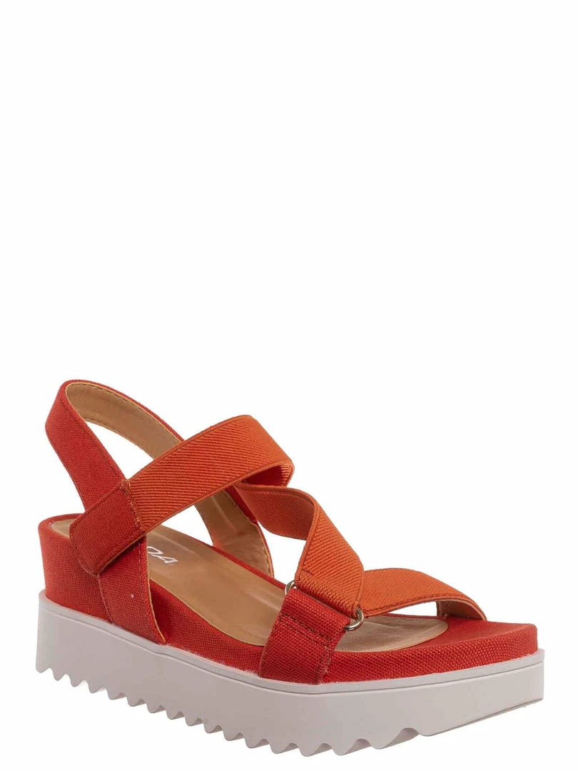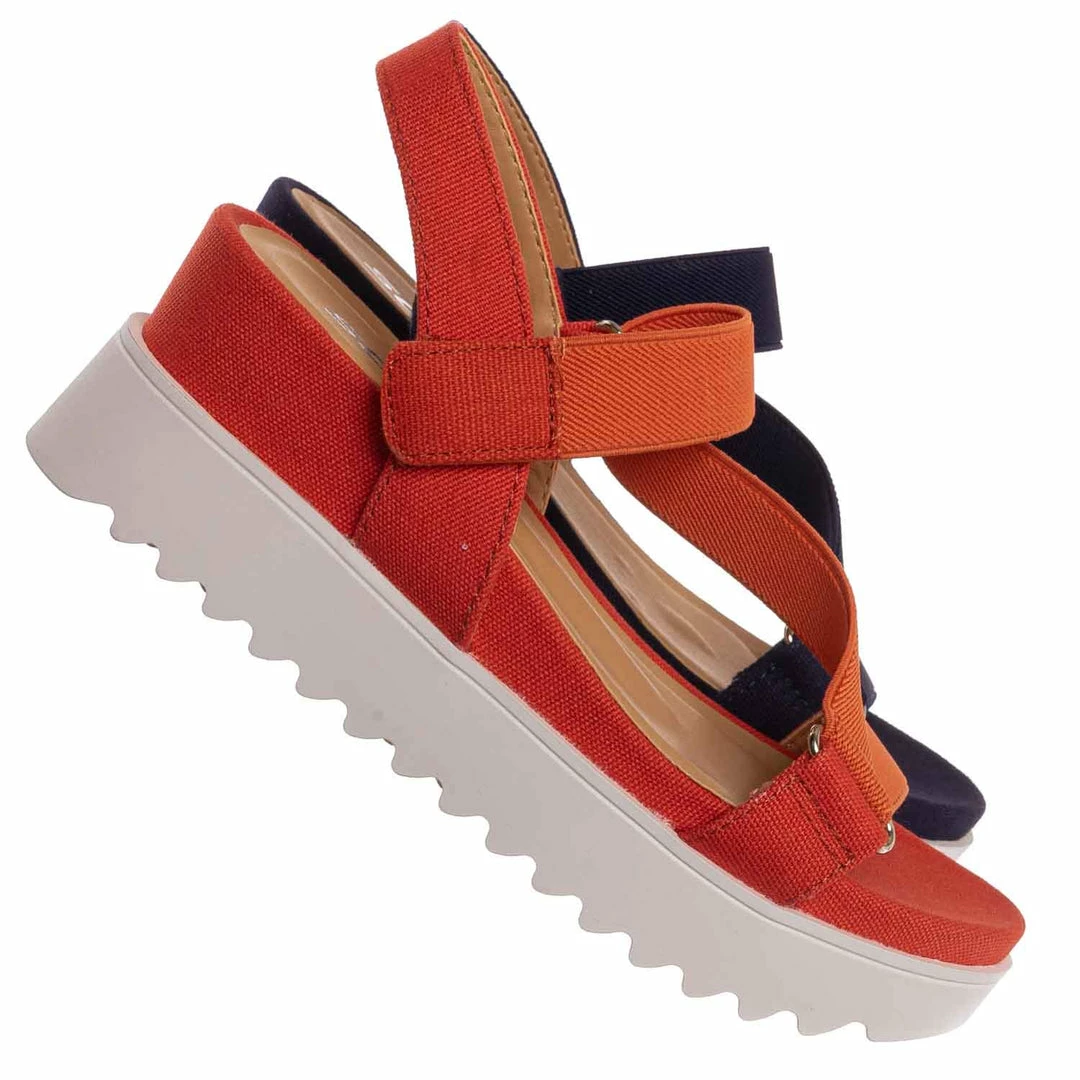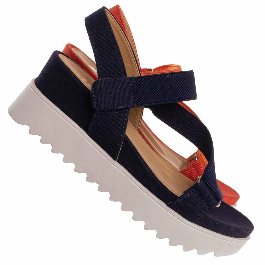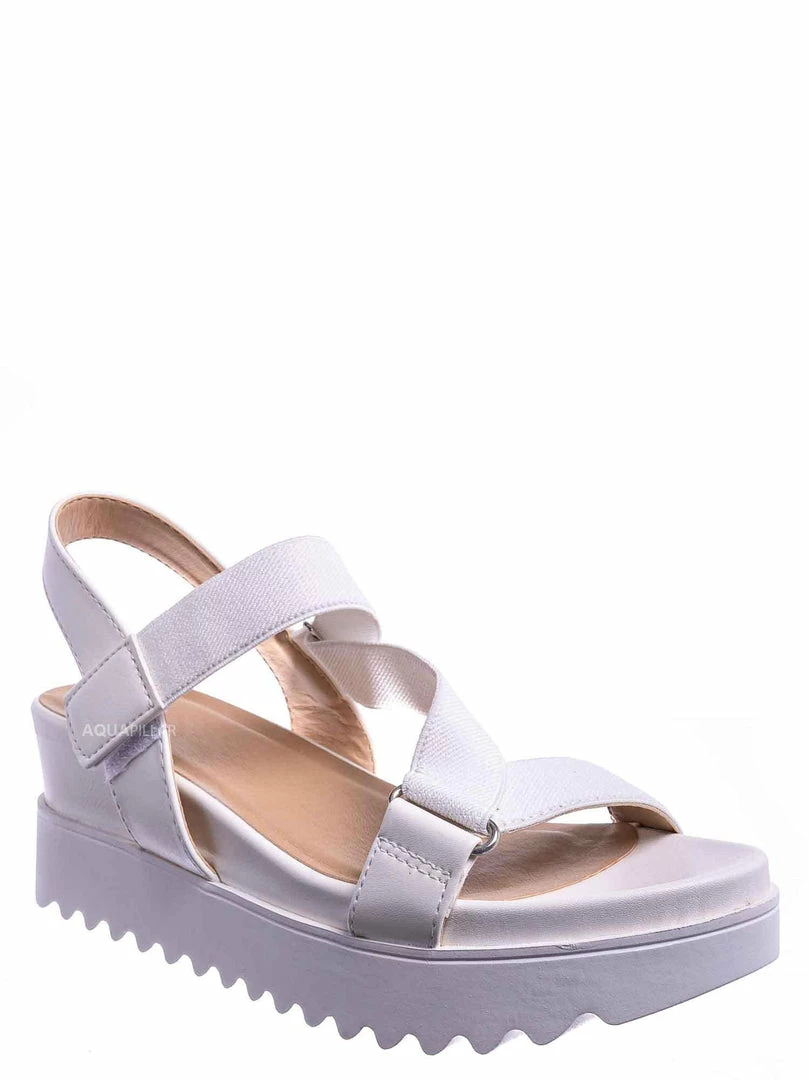 Product Detail: These sporty sandals feature an athleisure silhouette, comfortable thick platform, threaded Sharktooth outsole, nylon looping strap, easy to snap on hook and loop closure, and foam padded insole