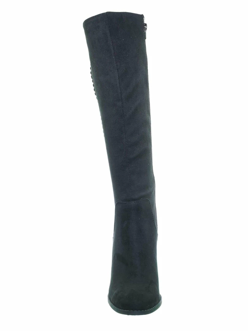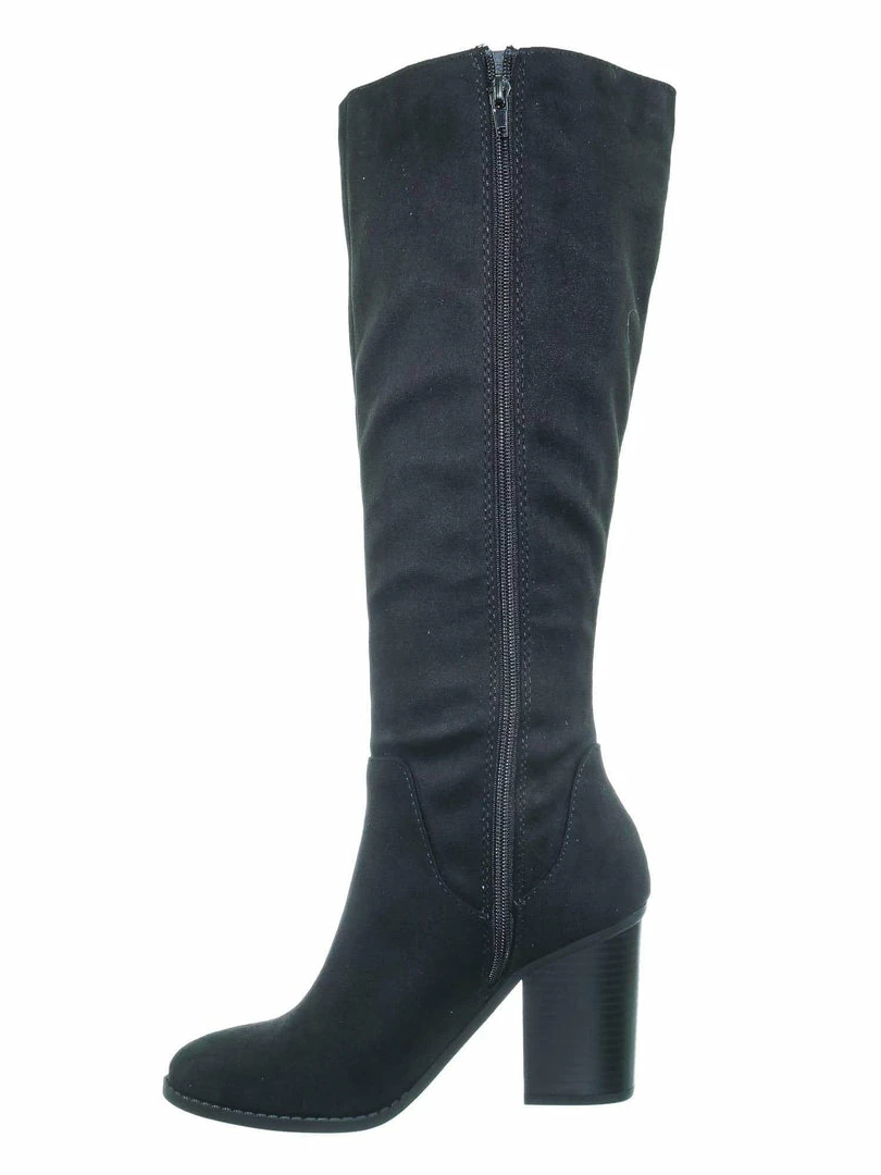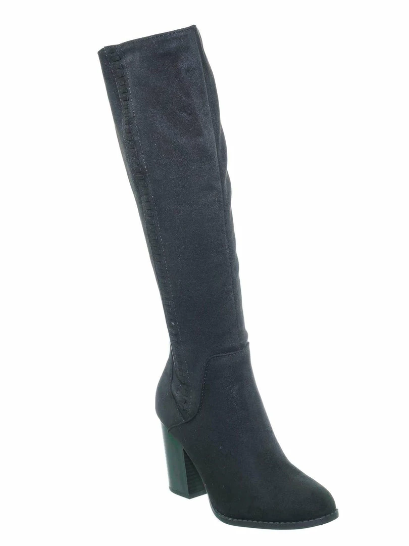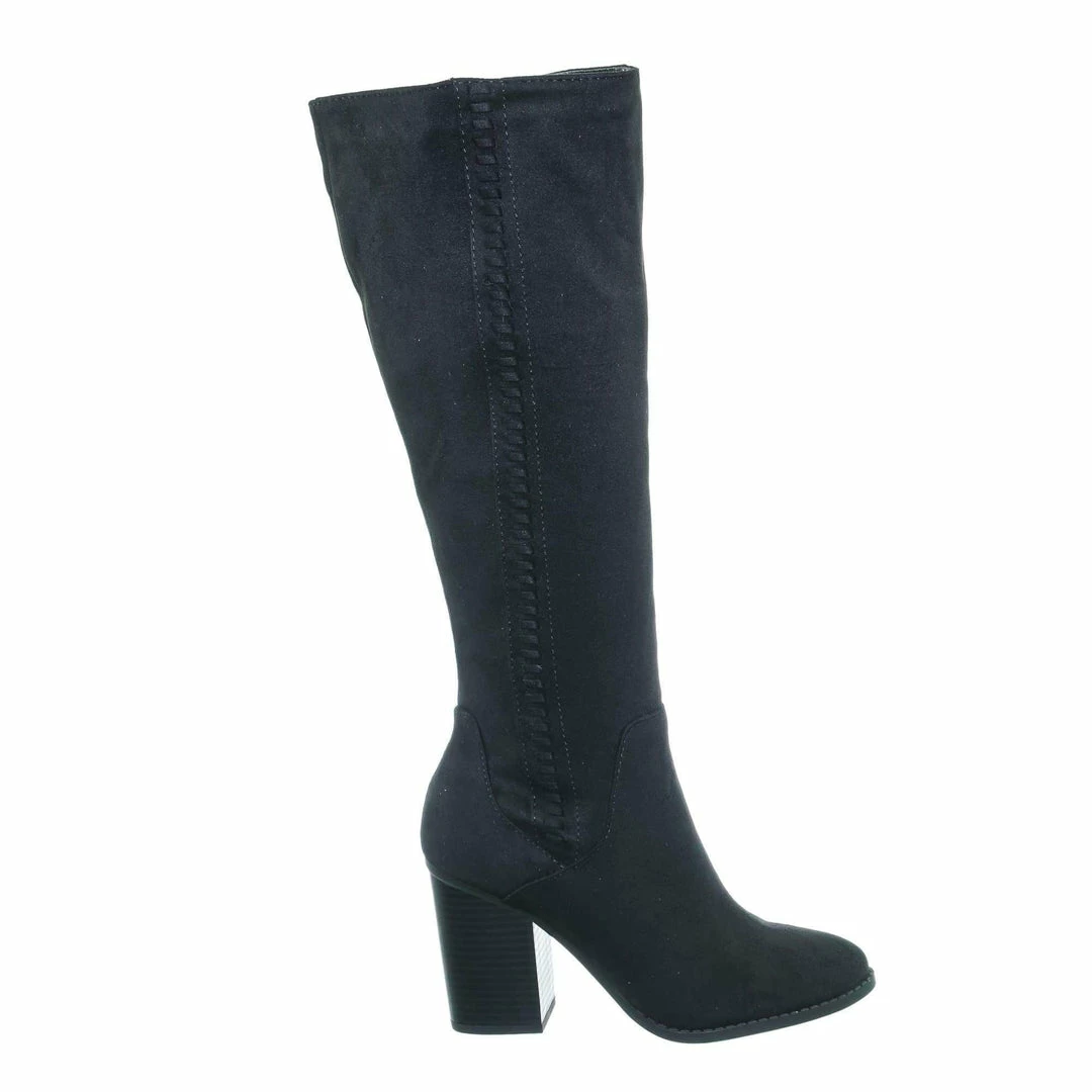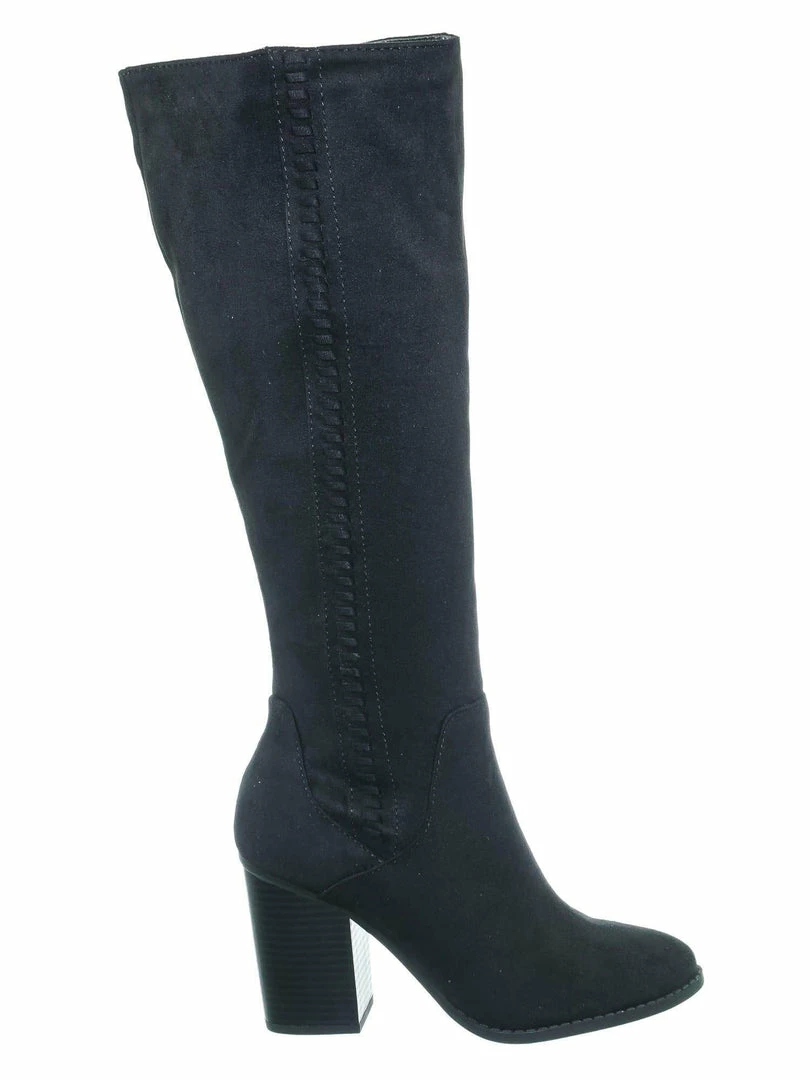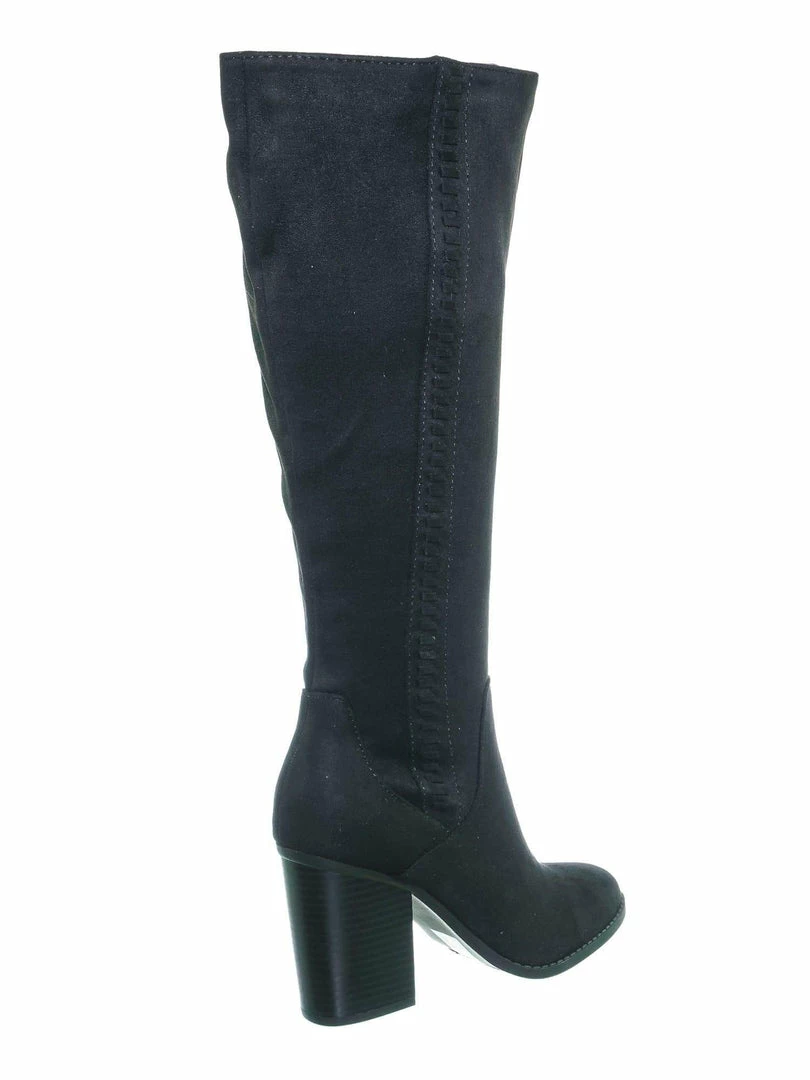 Product Detail : These knee high boots features a western inspired silhouette with a side braided design, stacked chunky block heel, rounded closed toe, soft fabric, light weight construction and fabric lined. The calf is measured 15 inches wide, please measure your calf width before purchasing.