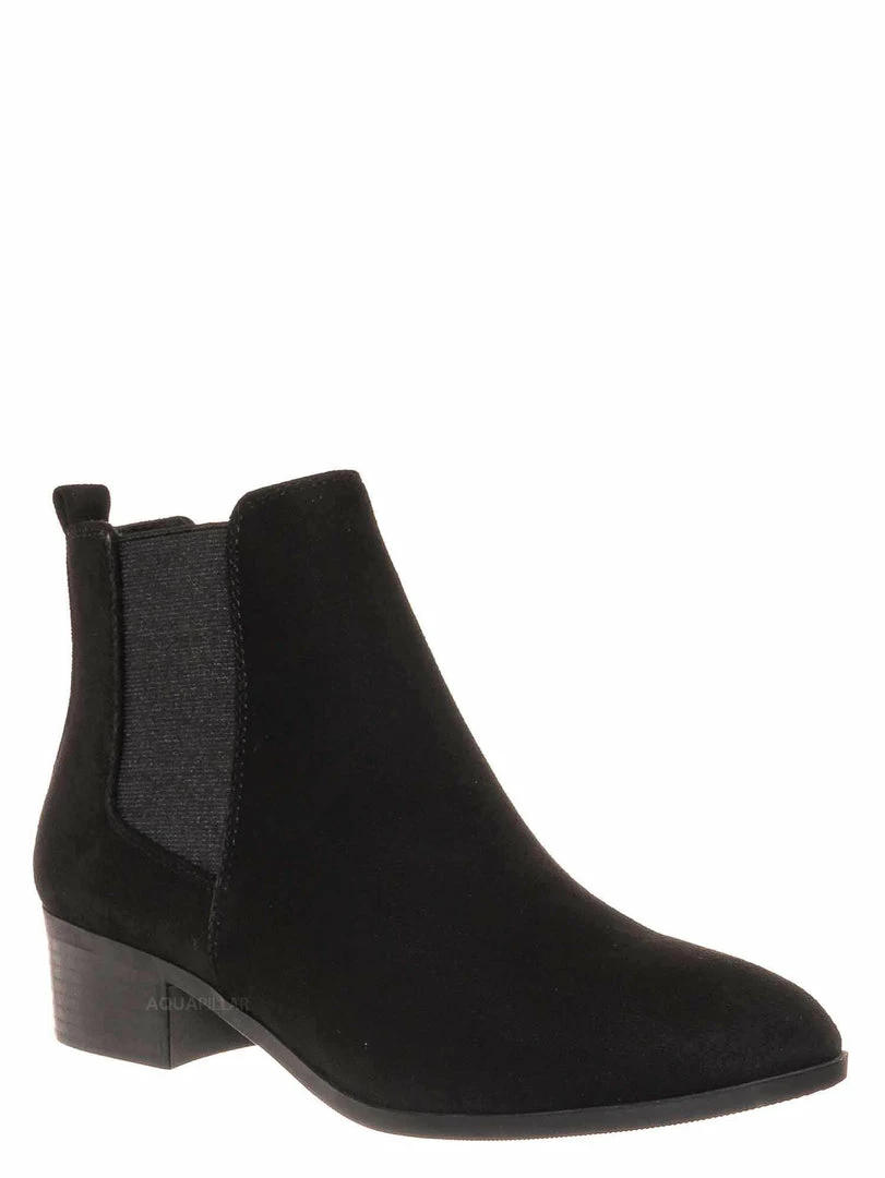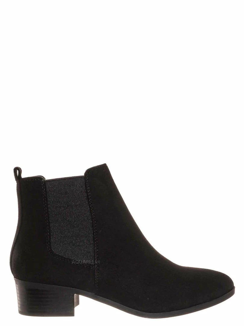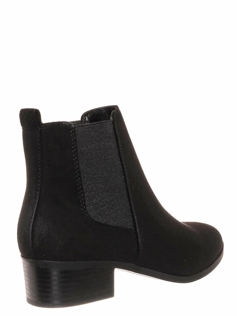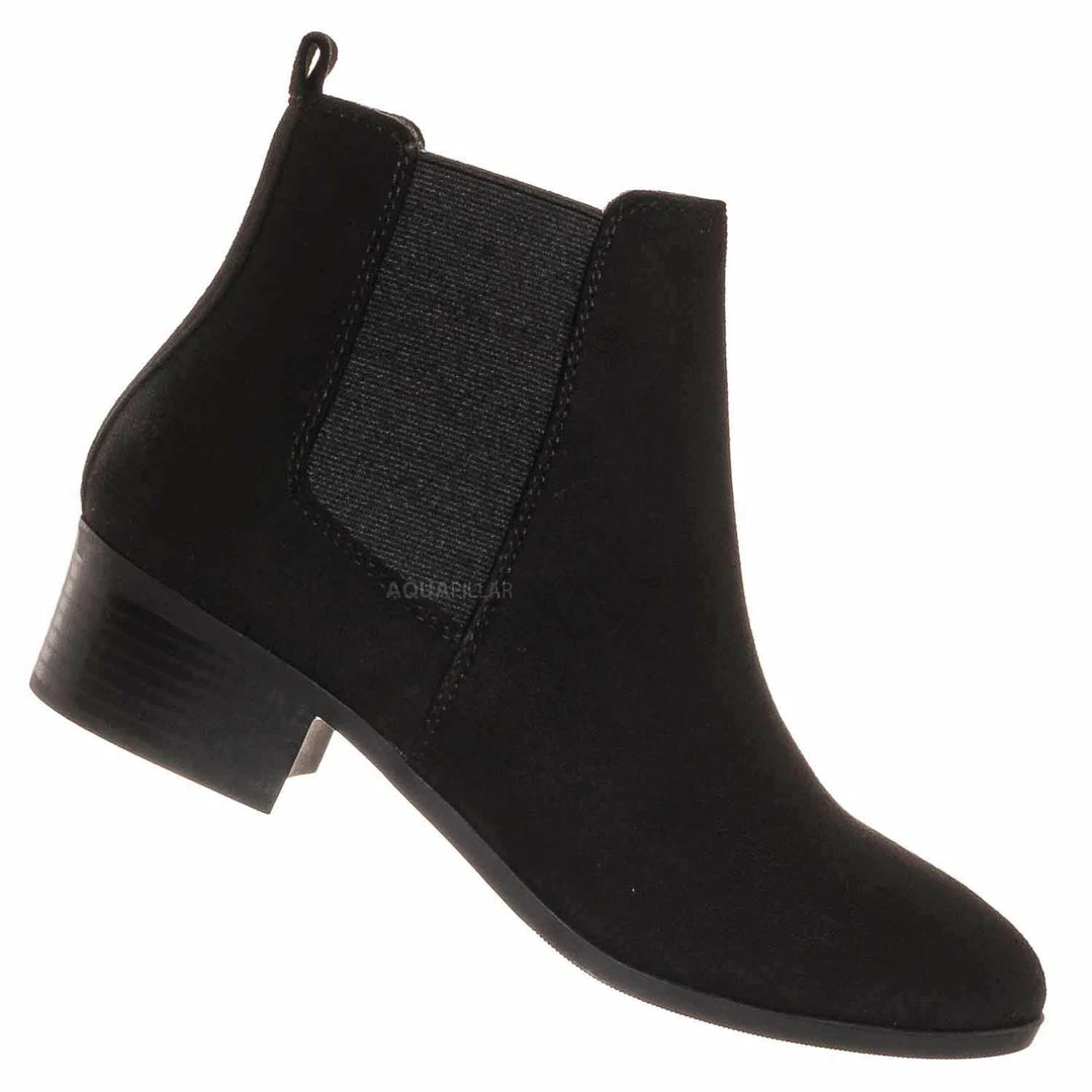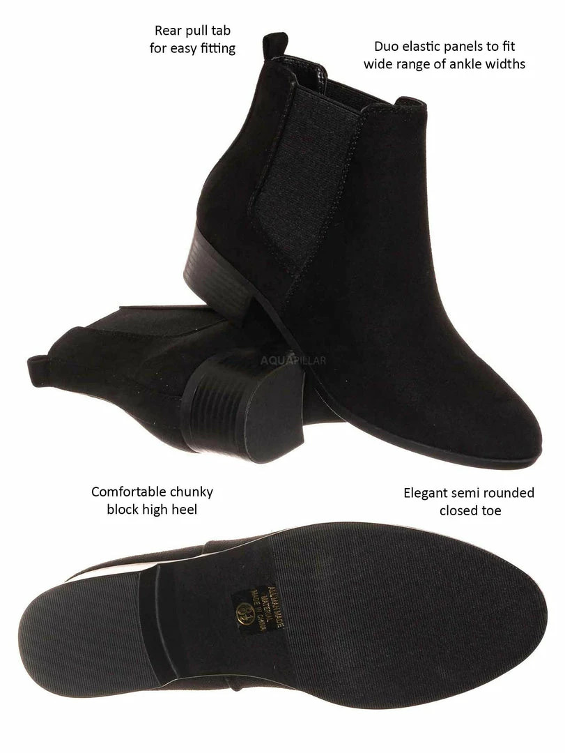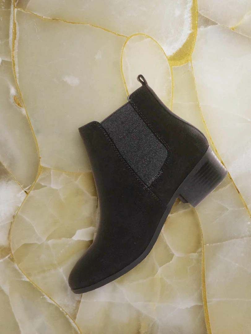 Product Detail : These simple ankle bootie features a minimalistic silhouette with a comfy chunky low block heel and a modern almond shaped toe. Two side elastic panel is located on both sides of the boots for comfortable fitting and a rear pull tab to help you slide in more comfortably.