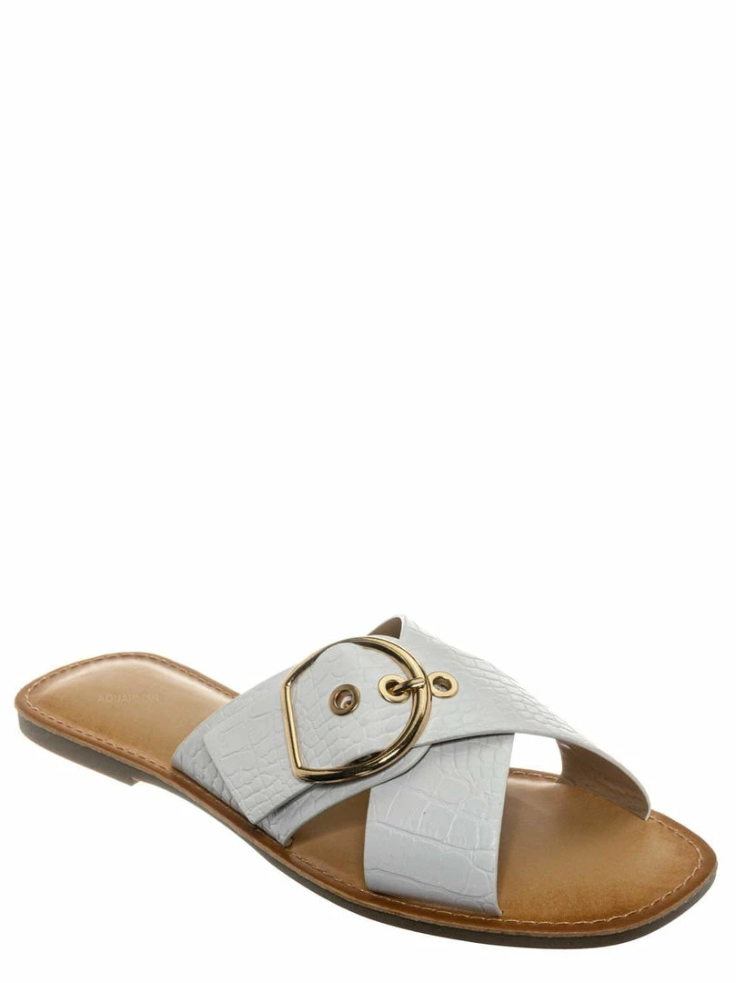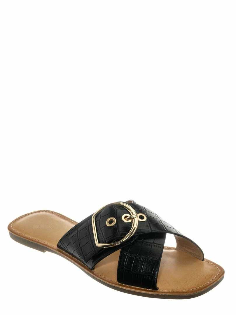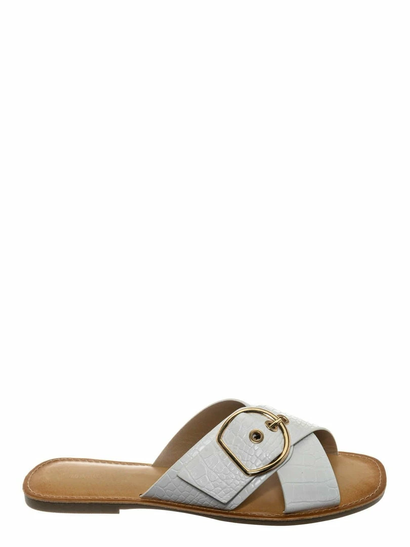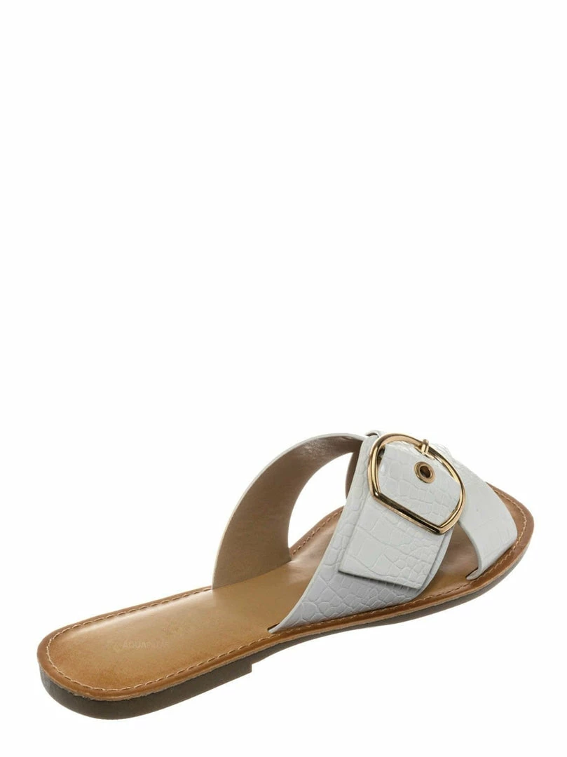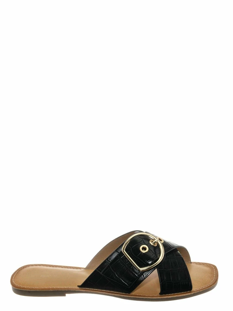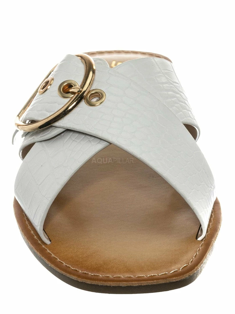 Product Detail : These slippers features a slide in construction, double X-strap upper, decorative buckle detail, crocodile embossed strap, vintage stained insole and lightly padded insole.
