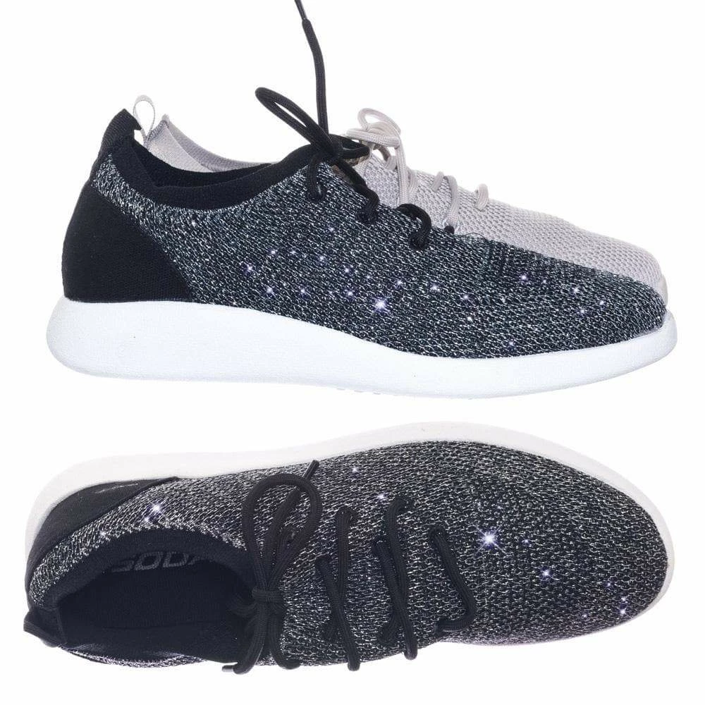 Soda Pitch Super Lightweight Lace Up Sneaker W Mesh Metallic Glitter Fabric New