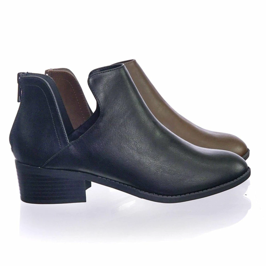 Soda Testing Double Side Slit Cutout Ankle Bootie W Low Block Heel