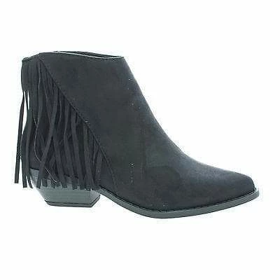 Soda Volley Asymmetric Fringe Western Pointy Toe Ankle Women’s Boots