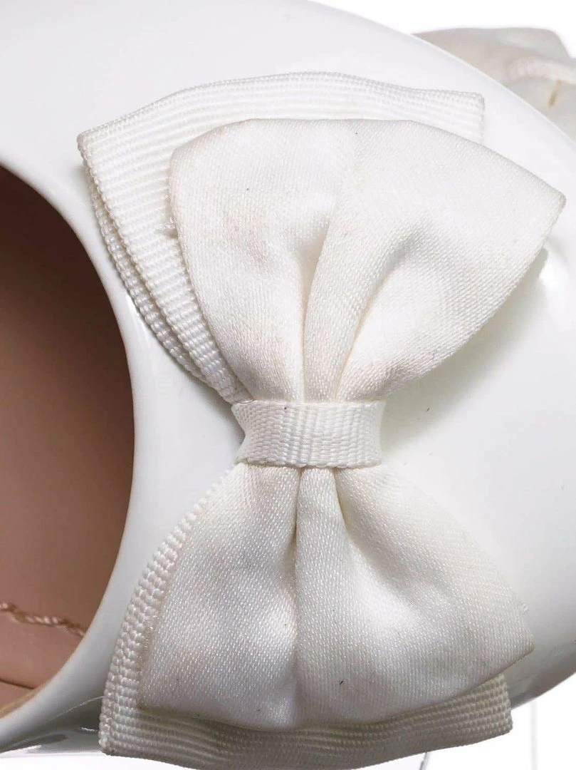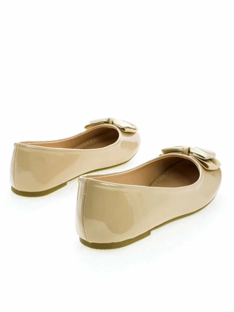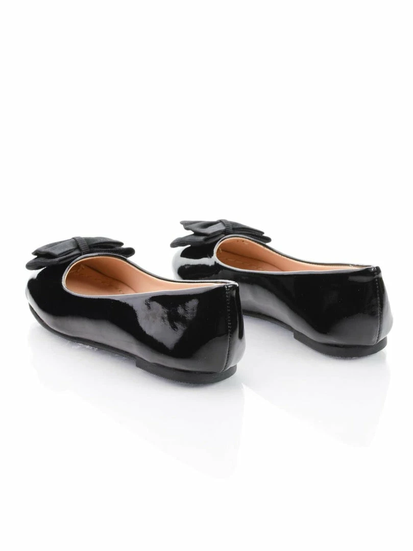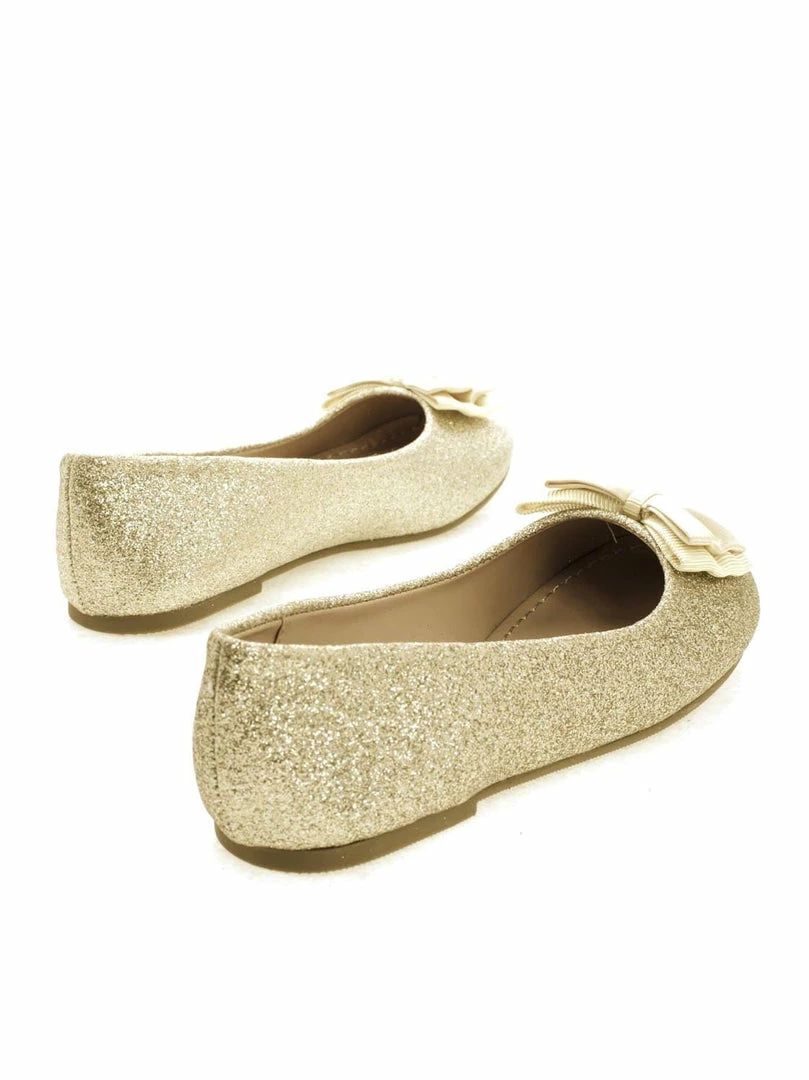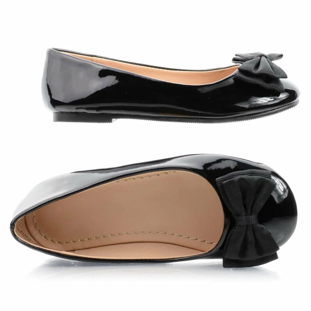 Product Detail : These kid’s size bow feature a rounded toe, a decorative bow near the toe, flat heel, ballet flat silhouette and lightly padded insole.