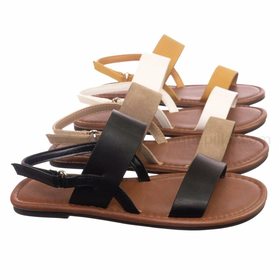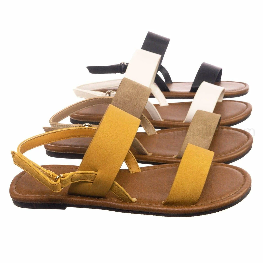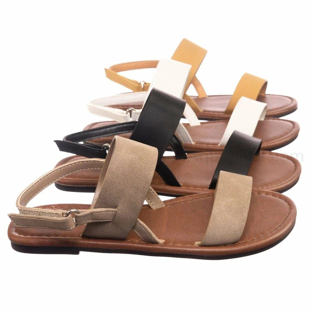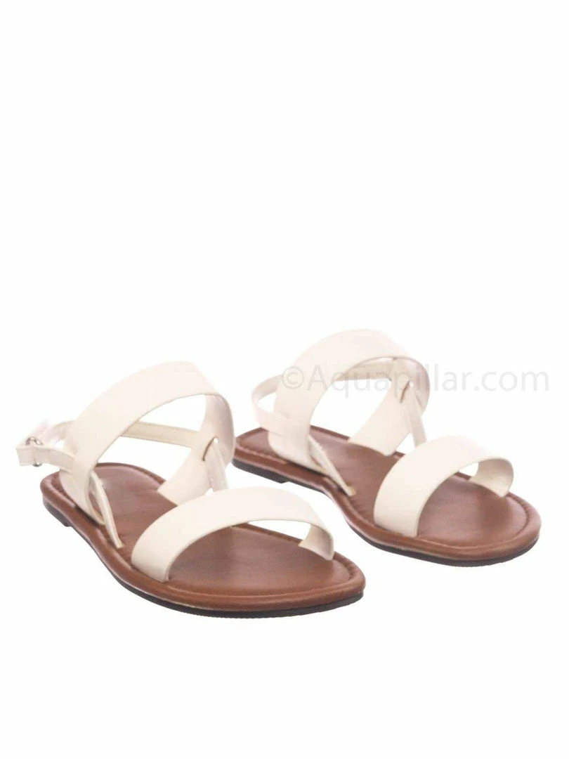 Product Detail : These flat sandals are in children’s sizes featuring double foot strap, sling back strap with hook & loop closure, lightly padded insole.