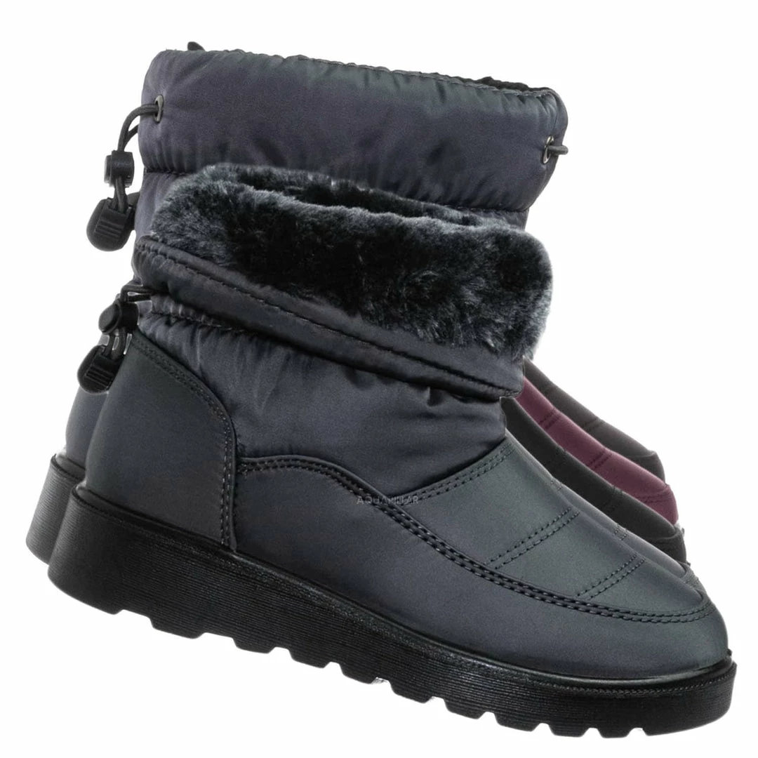 Product Detail : These technical boots for children’s features a nylon quilted shaft for light insulation, vegan friendly faux fur inner lining, rounded closed toe, weather proof body, drawstring toggle closure and rubber lugged sole. These them straight up for tight insulation or folded down for a more fashionable look.