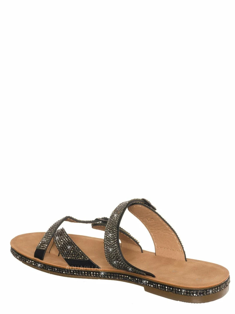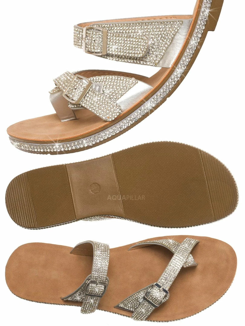 Parte superior adornada con cristales de pedrerÃa y suela ancha.