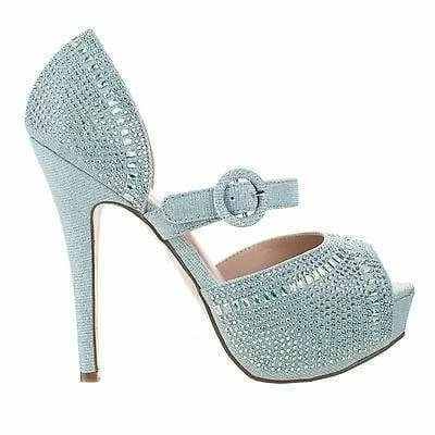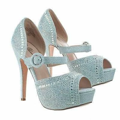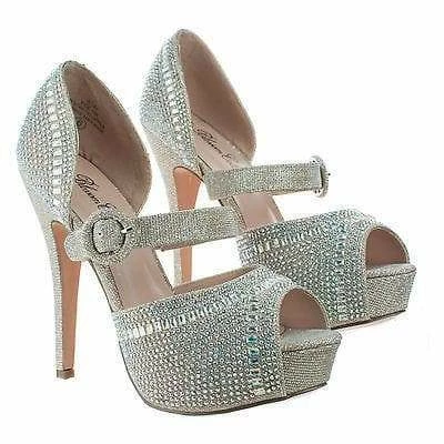 Add some class to your outfit with these sparkling shimmering platform stiletto pumps, featuring open toe, s glitter mesh material covering the entire shoe, studded round and rectangular rhinestones, a cushioned insole, an approximate 1.50 inch platform for extra comfort, and an approximate 5 inch high stiletto heel. (Please note that these measurements are based on a size 6). Style fits true to size. Available in Gold and Silver, etc. All man made materials. By Blossom Shoes. .