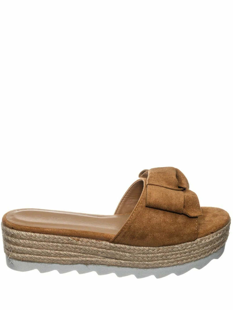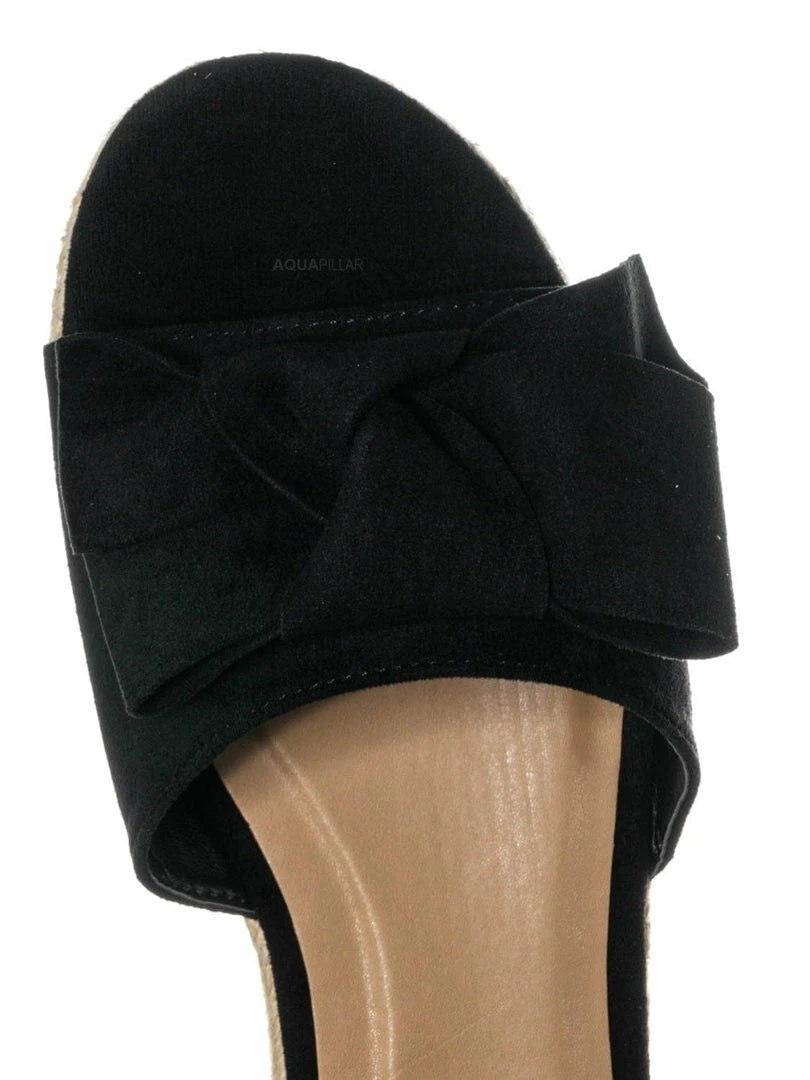 Benefits : These flats are super comfortable flatform with slide in construction and overside bow ornamentation for interest.