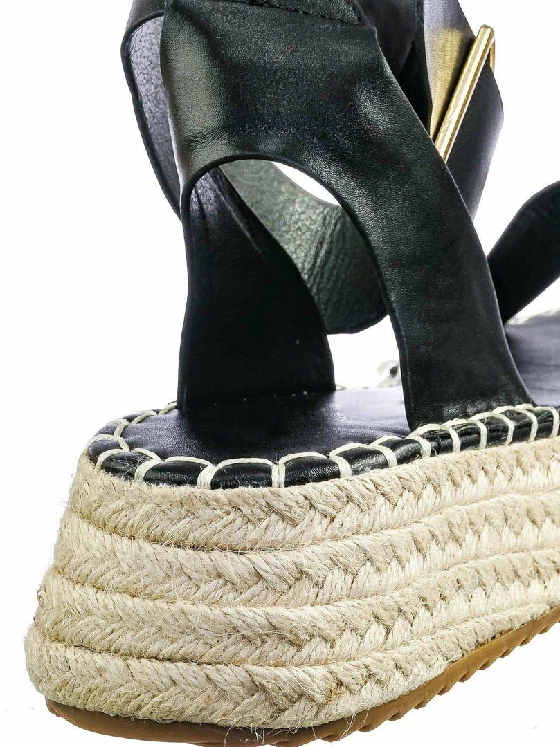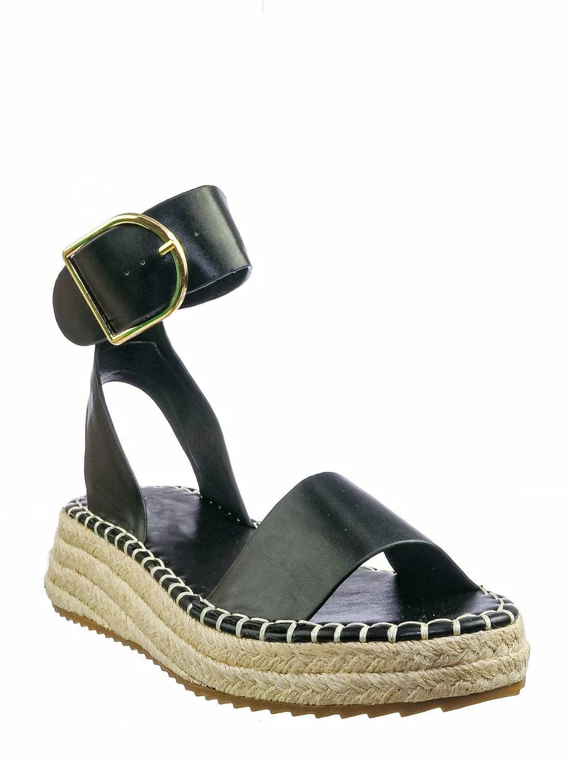 Product Detail : These flatform espadrilles features a jute braided espadrille, tapered platform, oversize thick ankle strap, large adjustable pin needle buckle closure, rounded open toe, threaded lug sole and lightly padded insoles.
