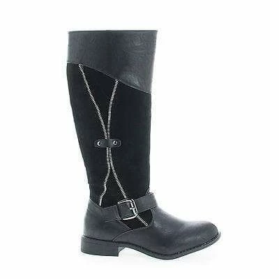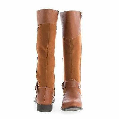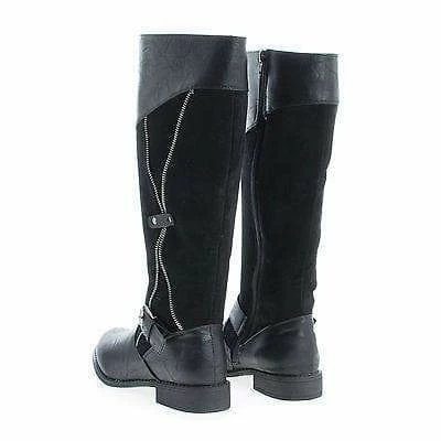 Wild Diva Oksana106 Knee High Round Toe Zipper Faux Wooden Heel Riding Boots New