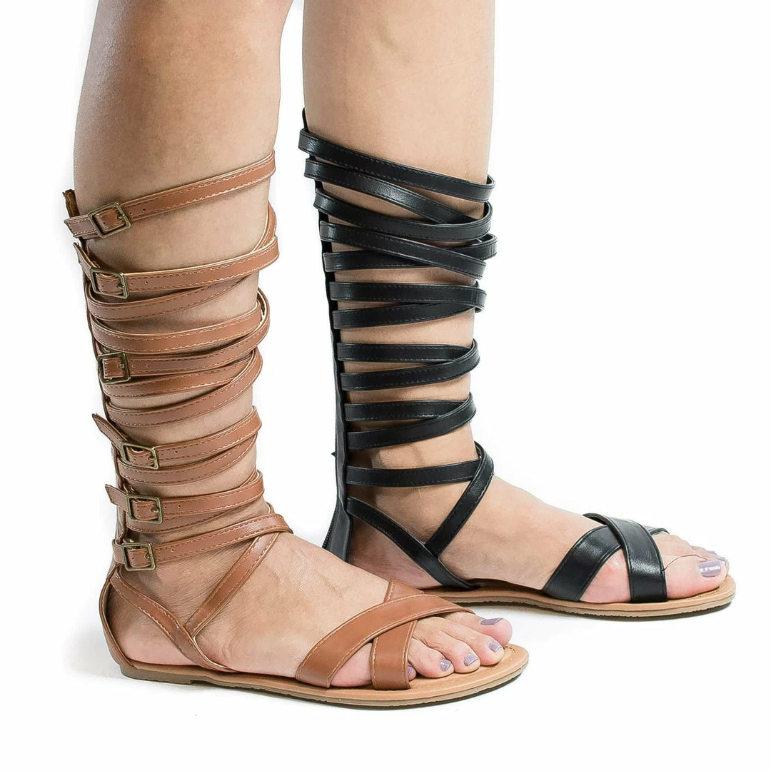 Be the first to review “Wild Diva Tanaya528 Knee High Open Toe Multi Criss Cross Strap Flat Sandals New” Cancel reply