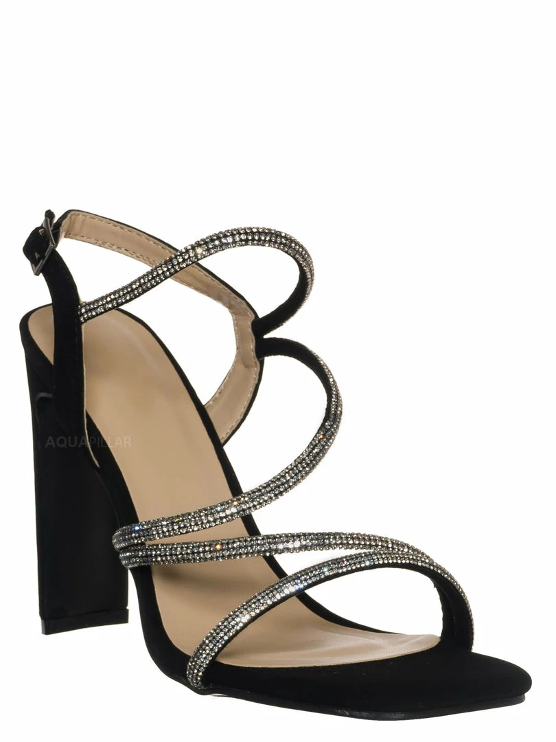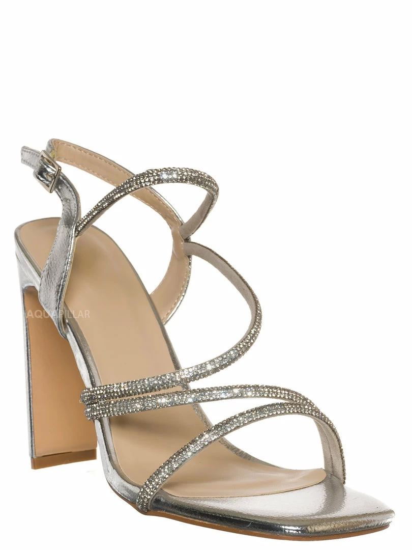 Cage like straps with rhinestone crystal embellishments.