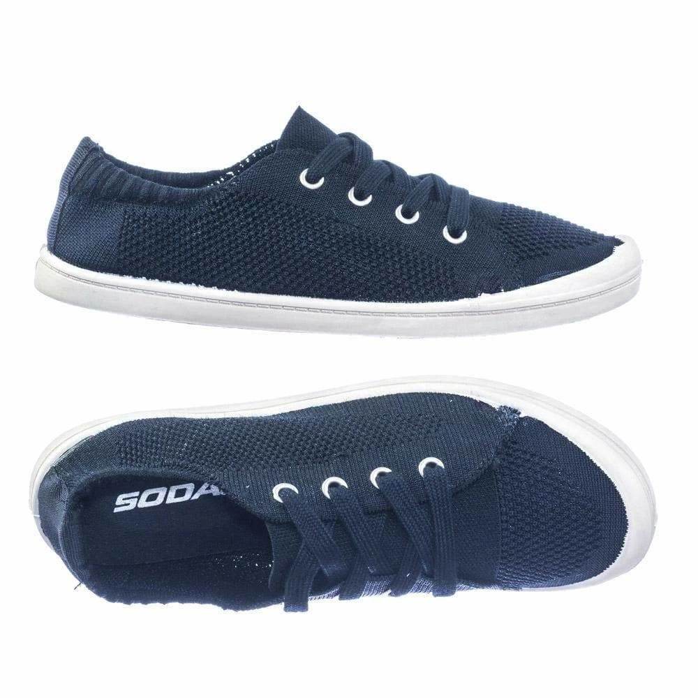 About This Shoes :These flat sneakers features a soft comfortable rubber outsole, canvas knitted crochet body with stretchable elastic that can be easily slip on, rounded toe, and lace up closure. Brand – Soda
